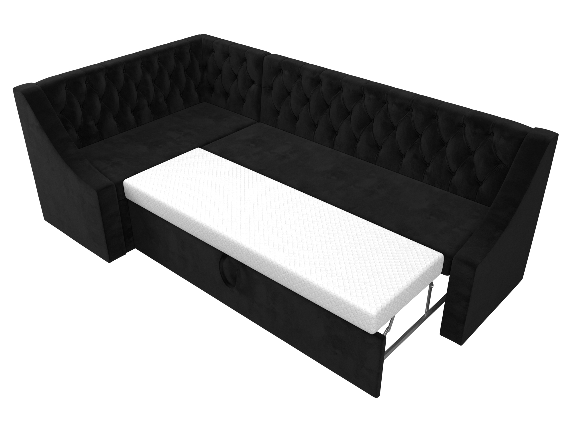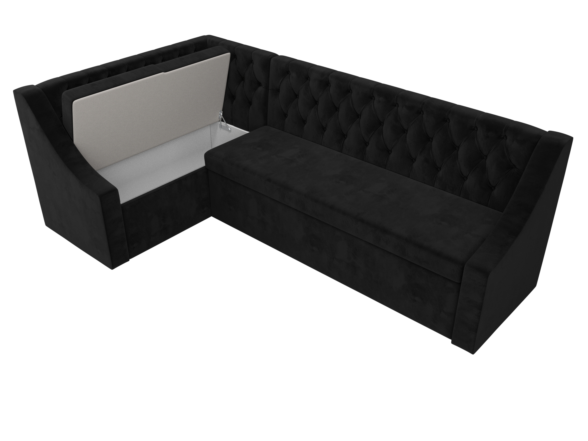 Диван кухонный угловой Мерлин левый угол Черный, Велюр