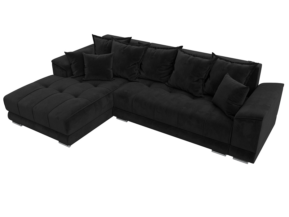 Диван угловой НордСтар левый угол Черный, Велюр
