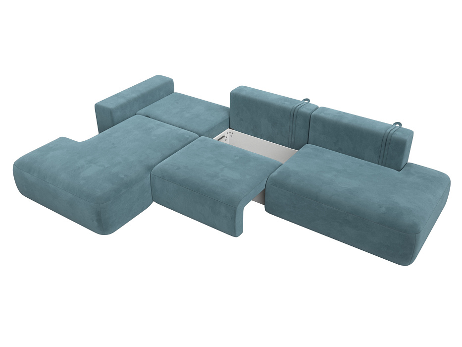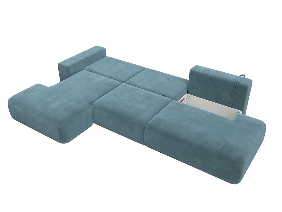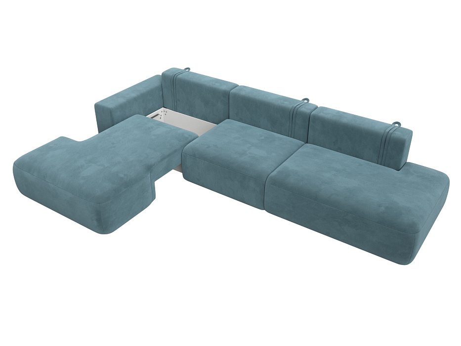 Диван угловой Лига-036 НПБ Модерн Лонг левый угол, SEVEN 113 бирюзовый, Велюр