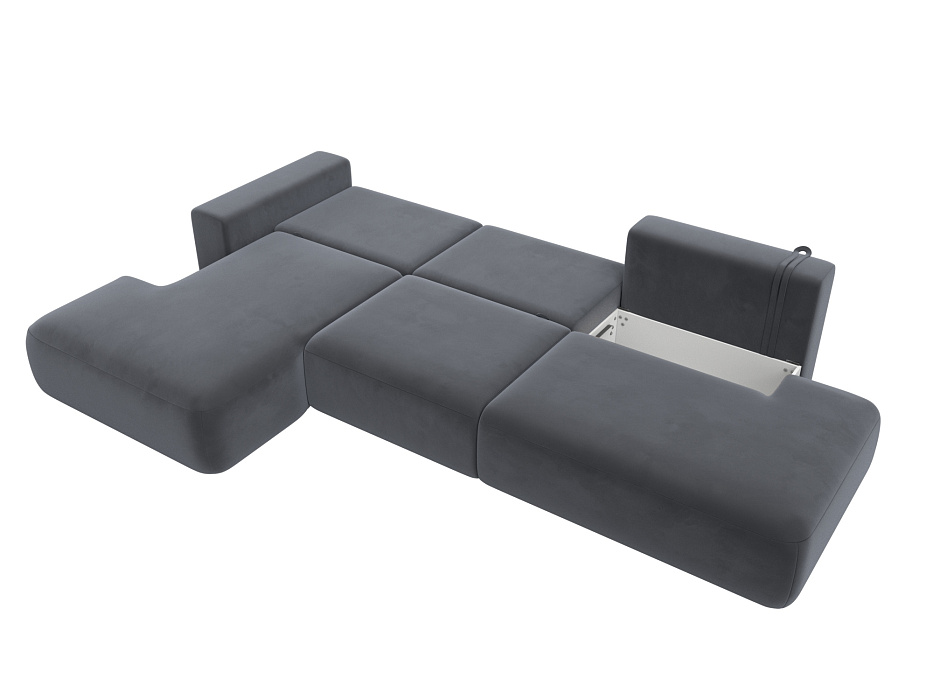 Диван угловой Лига-036 НПБ Модерн Лонг левый угол, SEVEN 17 серый, Велюр