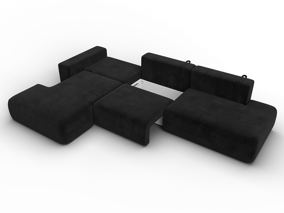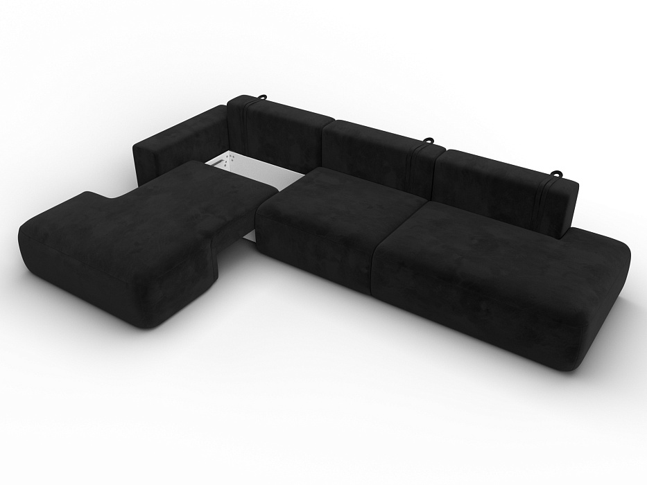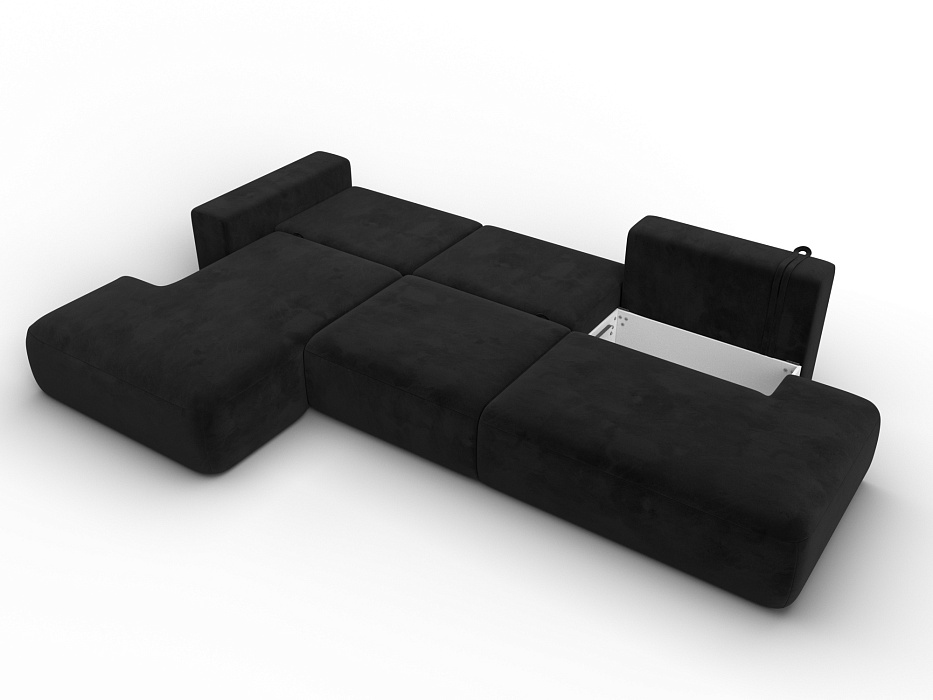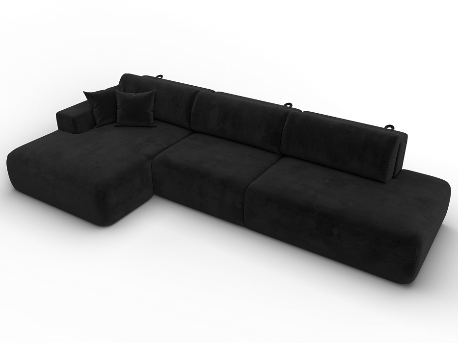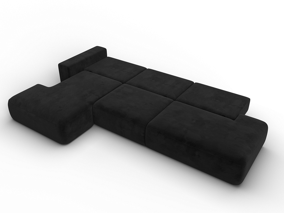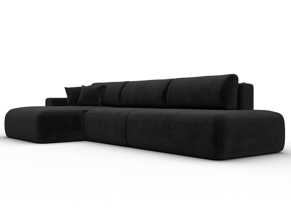 Диван угловой Лига-036 НПБ Модерн Лонг левый угол, SEVEN 35 черный, Велюр