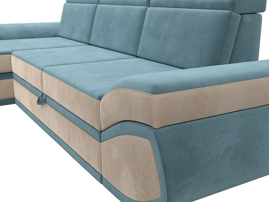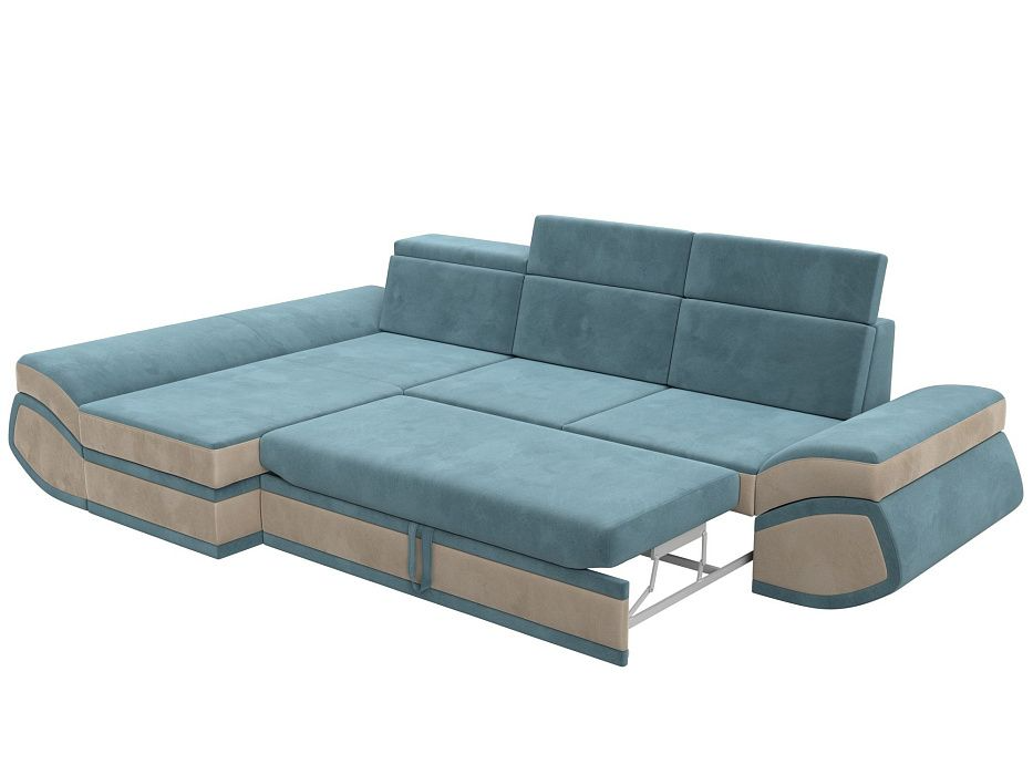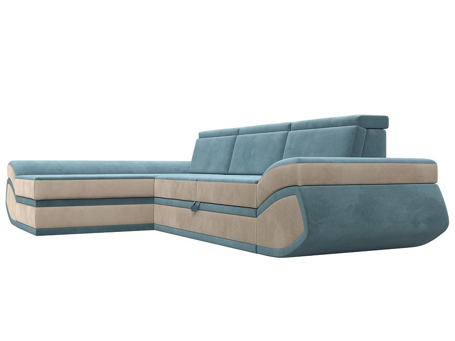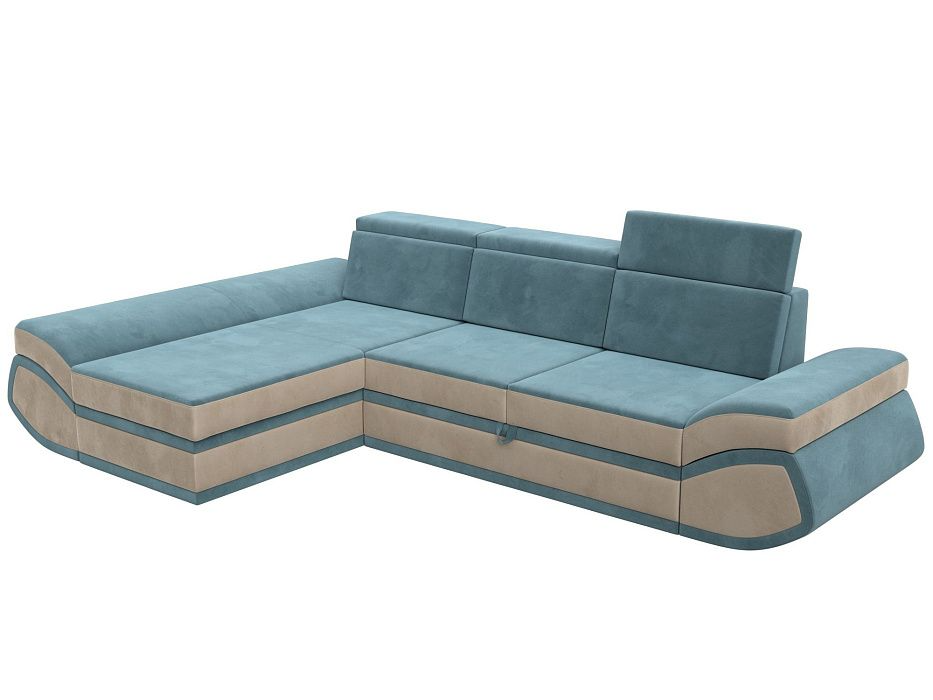 Диван угловой Лига-032 левый угол Бирюзовый\Бежевый, Велюр