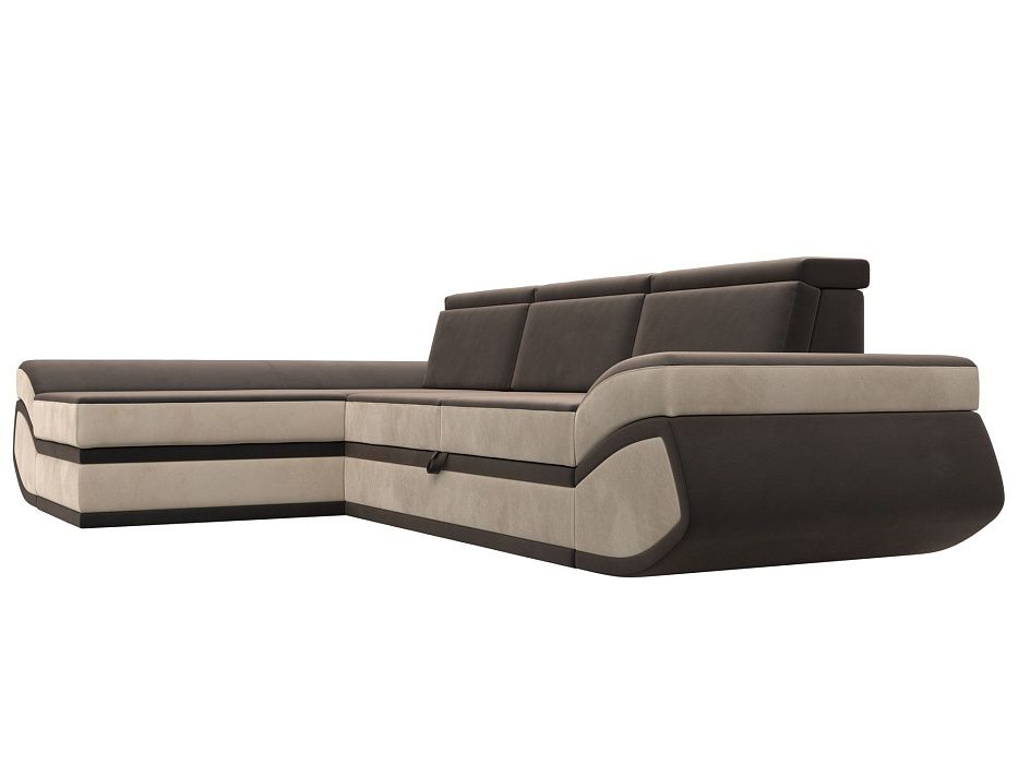 Диван угловой Лига-032 левый угол Коричневый\Бежевый, Велюр