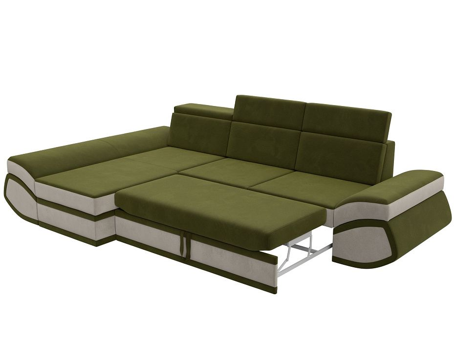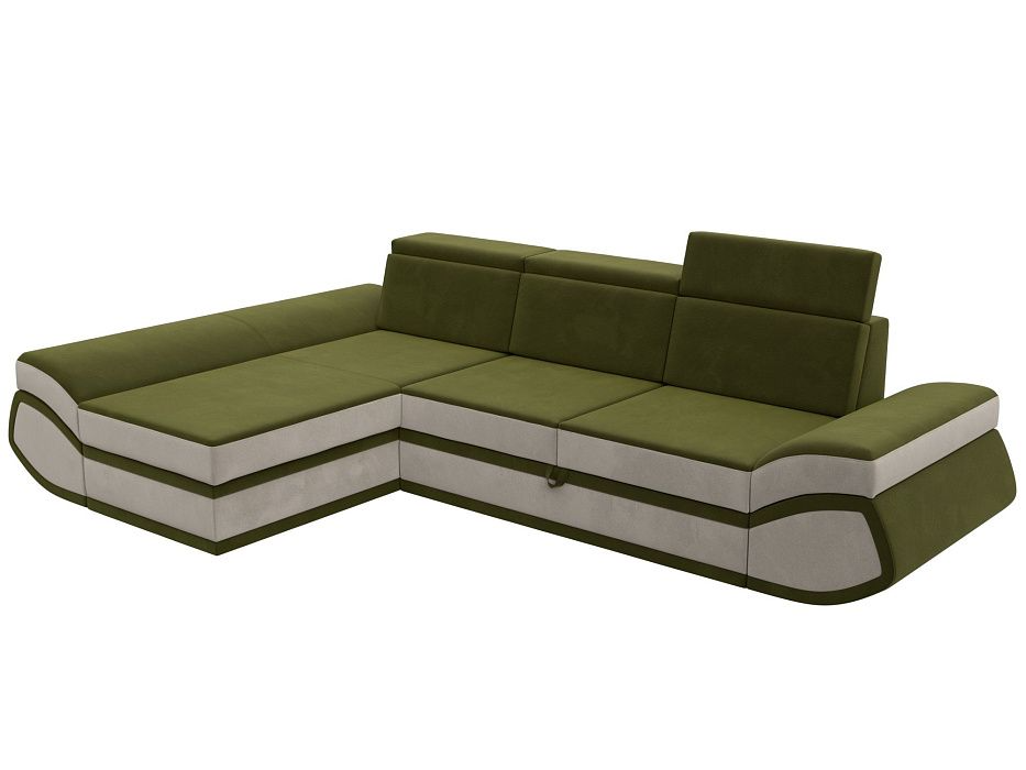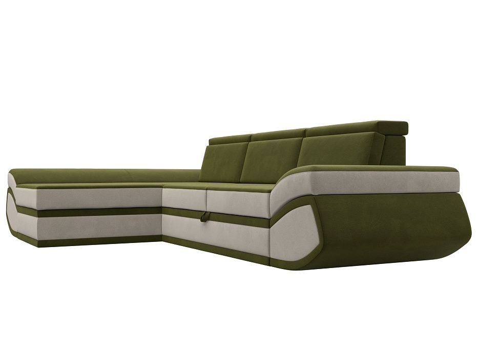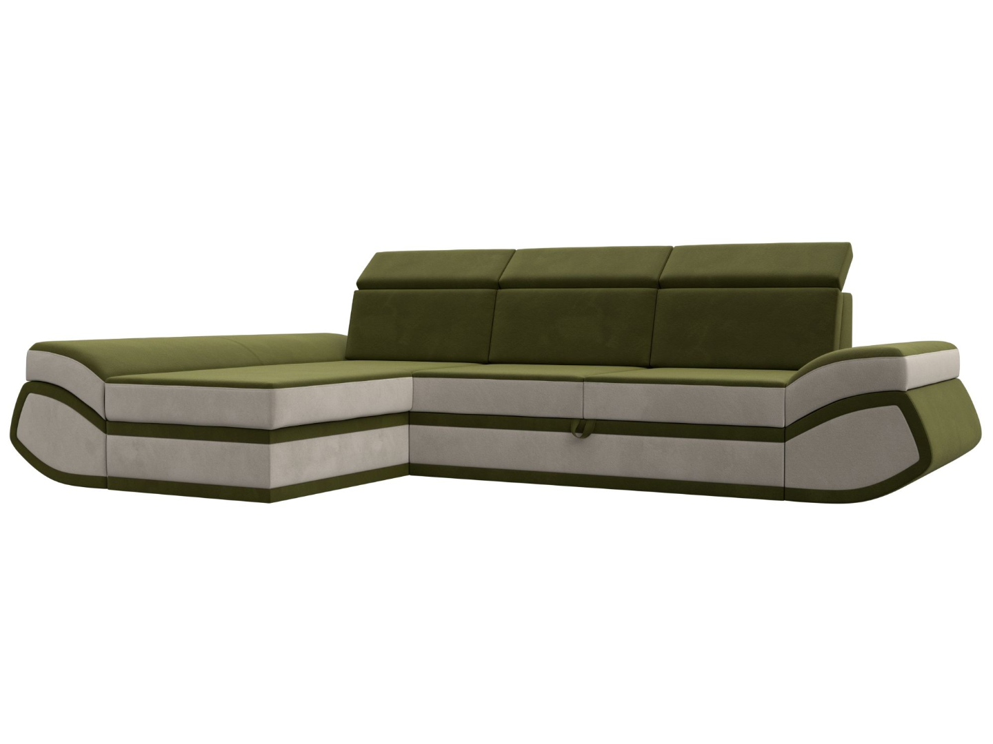 Диван угловой Лига-032 левый угол Зеленый\Бежевый, Микровельвет