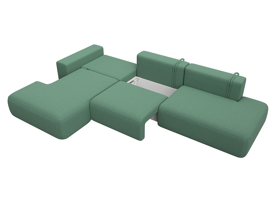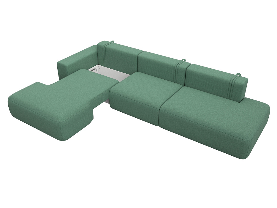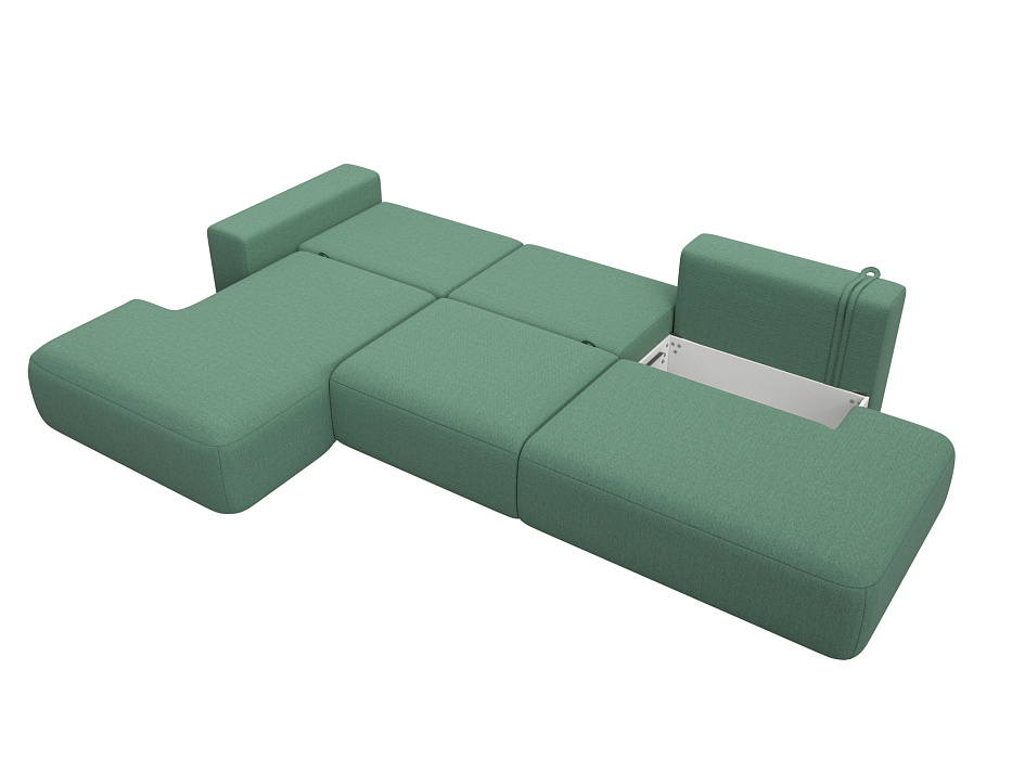 Диван угловой Лига-036 НПБ Модерн Лонг левый угол, Амур 11 зеленый, Рогожка