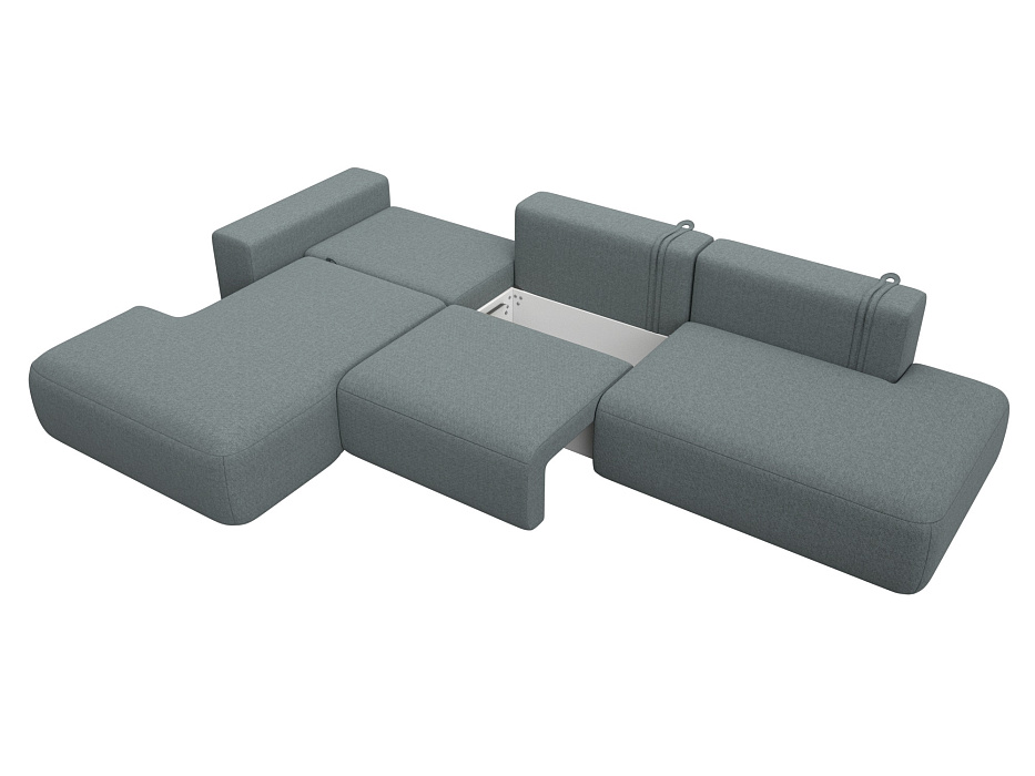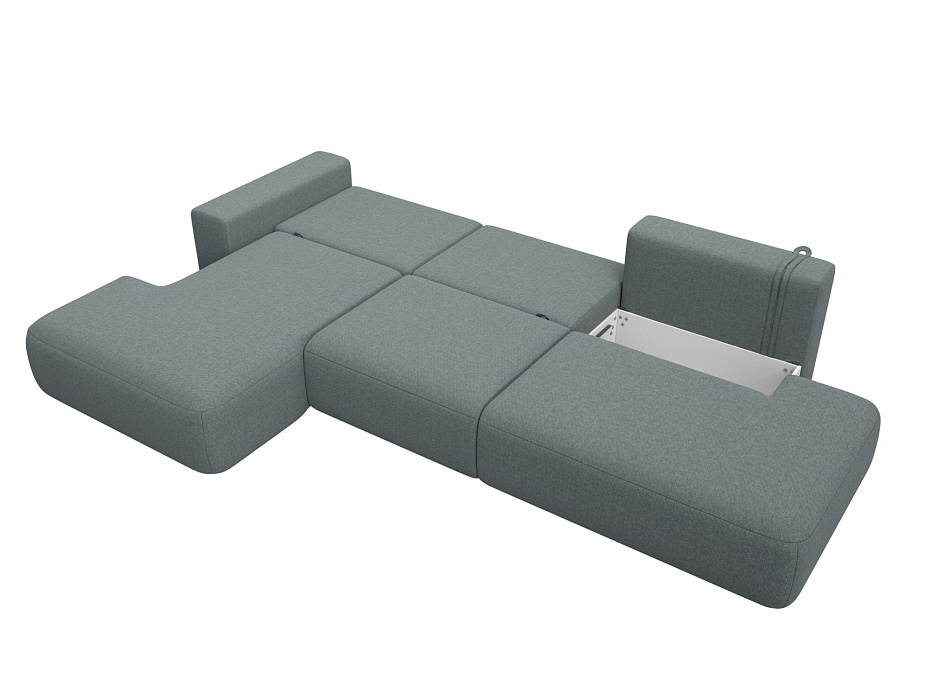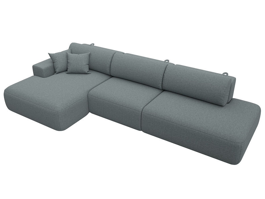 Диван угловой Лига-036 НПБ Модерн Лонг левый угол, Амур 07 серый, Рогожка