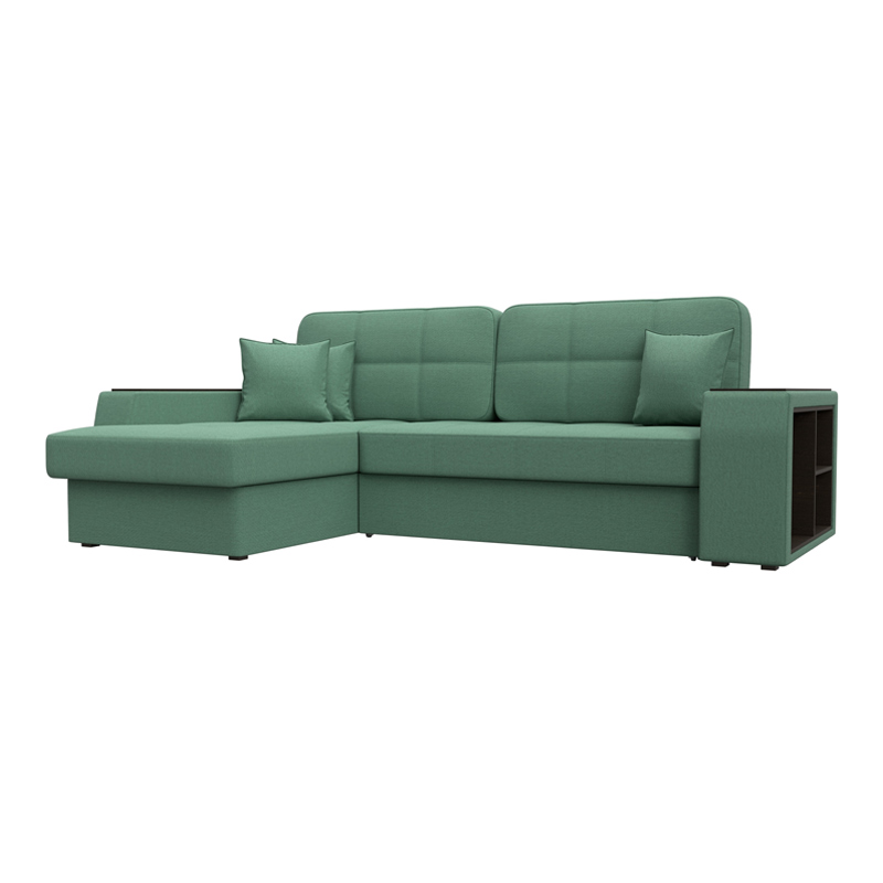 Запросить индивидуальное предложениеШикарный угловой диван Брюссель удобен и функционален в использовании. Подлокотники выполняют роль мини-столиков. Одна из боковин дополнена книжными полками, декорированным «под дерево». Под длинной боковиной расположена ниша для белья. Изделие оснащено удобным механизмом трансформации в двуспальную кровать.