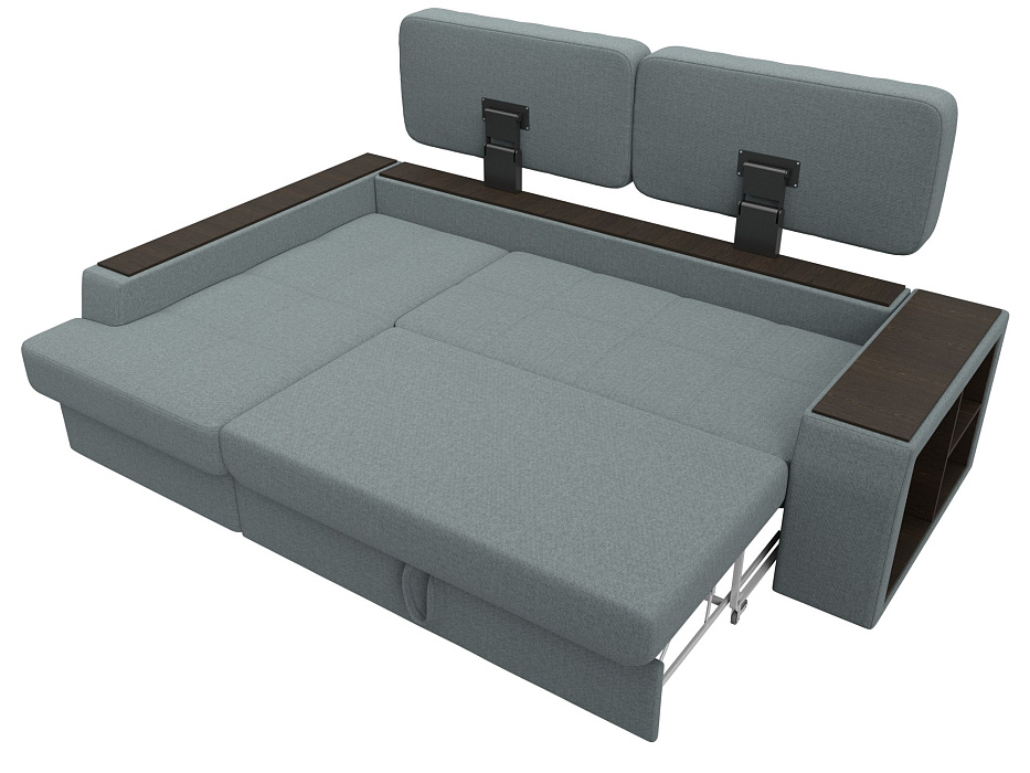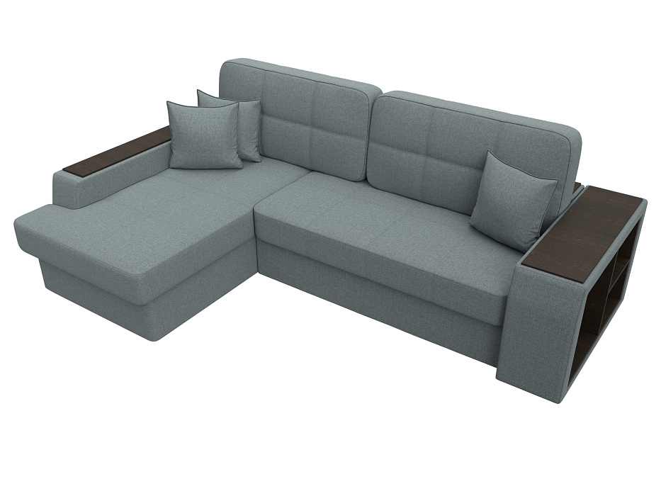 Запросить индивидуальное предложениеШикарный угловой диван Брюссель удобен и функционален в использовании. Подлокотники выполняют роль мини-столиков. Одна из боковин дополнена книжными полками, декорированным «под дерево». Под длинной боковиной расположена ниша для белья. Изделие оснащено удобным механизмом трансформации в двуспальную кровать.