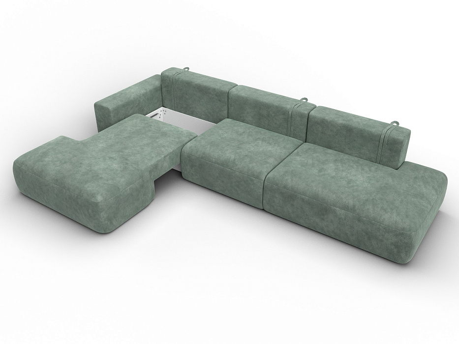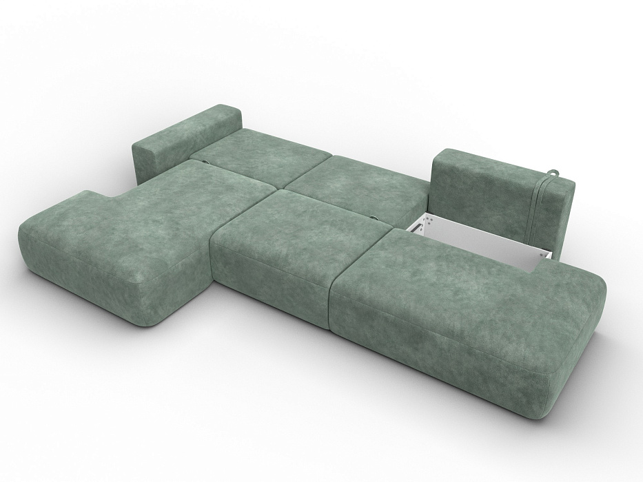 Диван угловой Лига-036 НПБ Модерн Лонг левый угол, BRUT 08 зеленый, Велюр