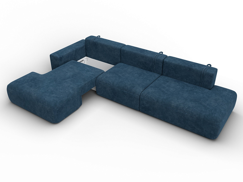 Диван угловой Лига-036 НПБ Модерн Лонг левый угол, BRUT 11 синий, Велюр