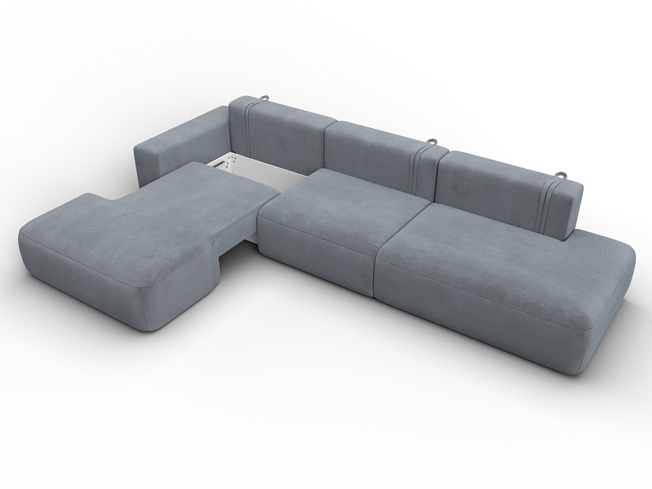 Диван угловой Лига-036 НПБ Модерн Лонг левый угол, TOWER 10 серый, Велюр