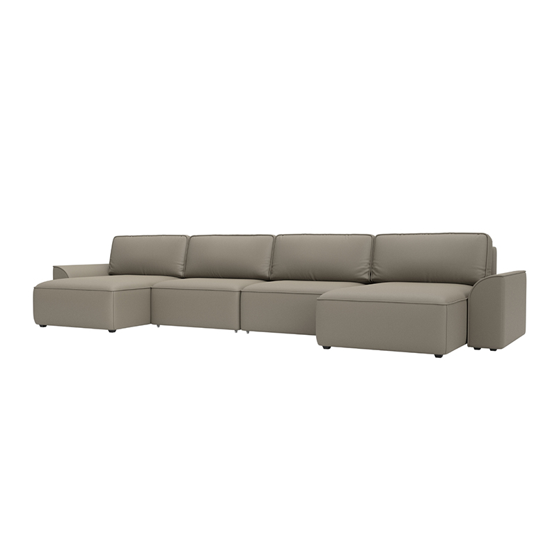 Диван П-образный Лига-048 НПБ лонг бежевый, Экокожа