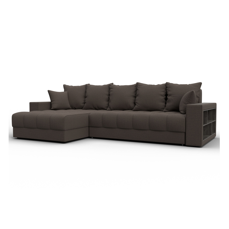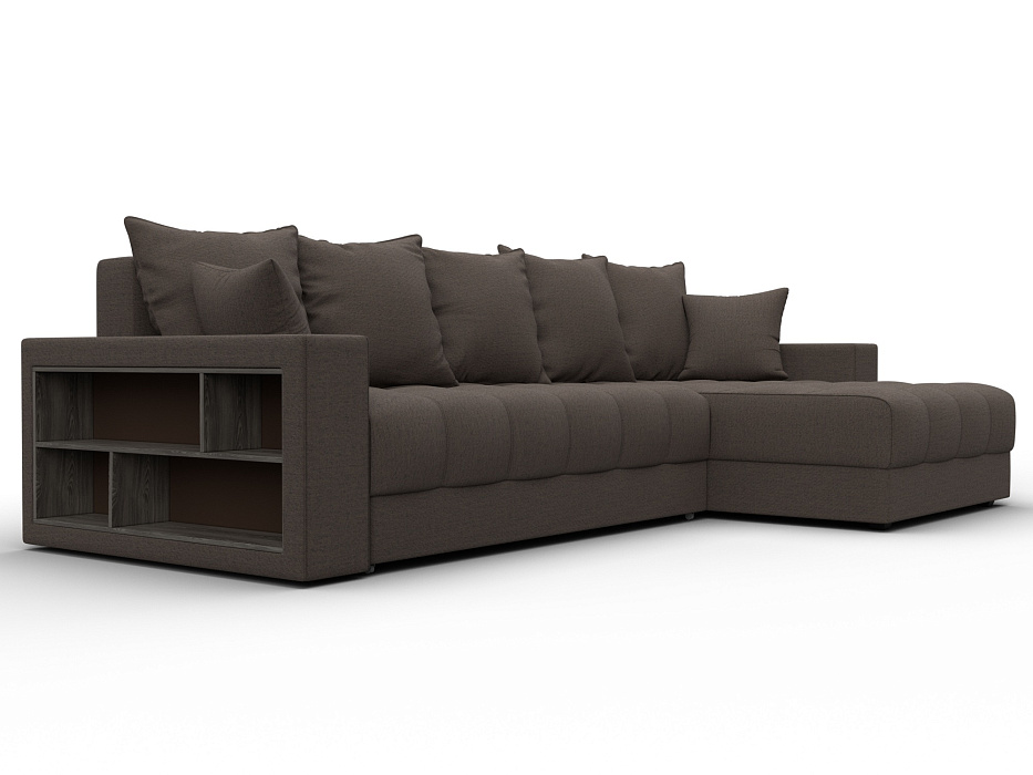 Диван угловой с декором и полкой Лига-050 НПБ, Амур 05 коричневый, Рогожка
