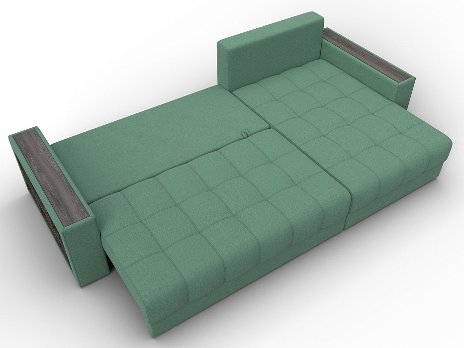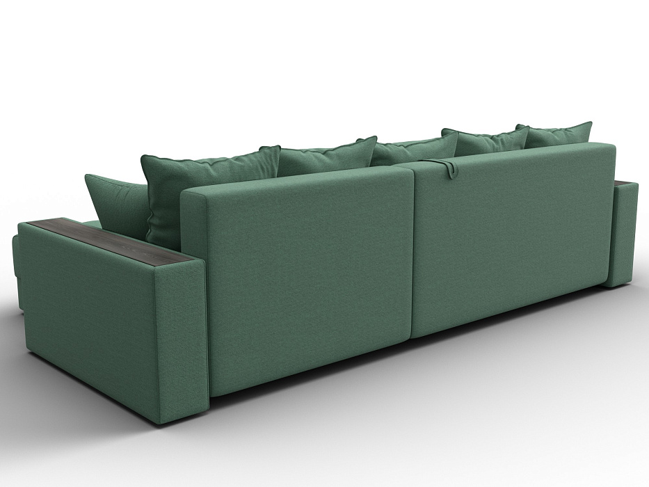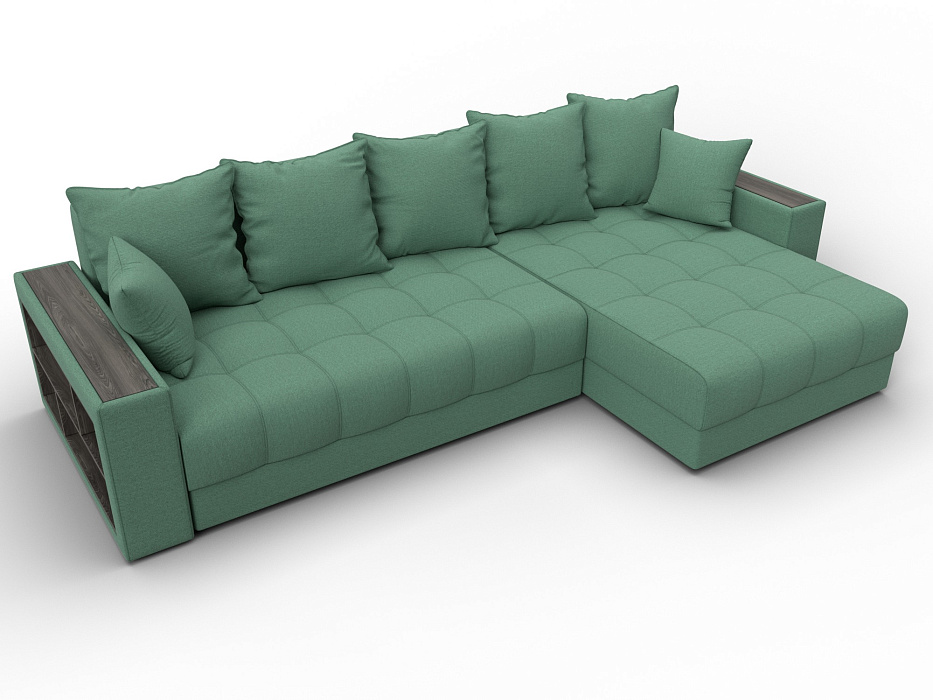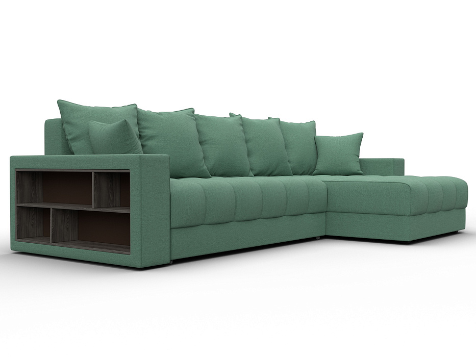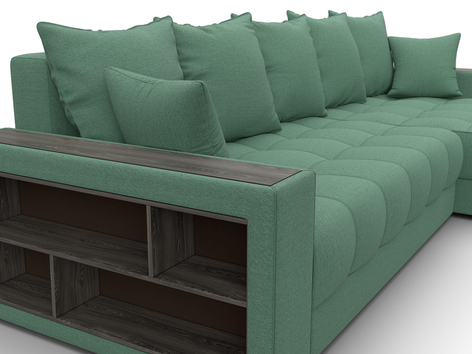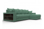 Диван угловой с декором и полкой Лига-050 НПБ, Амур 11 зеленый, Рогожка
