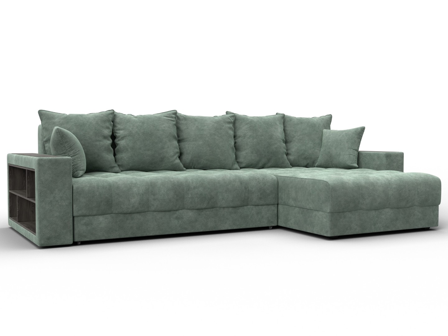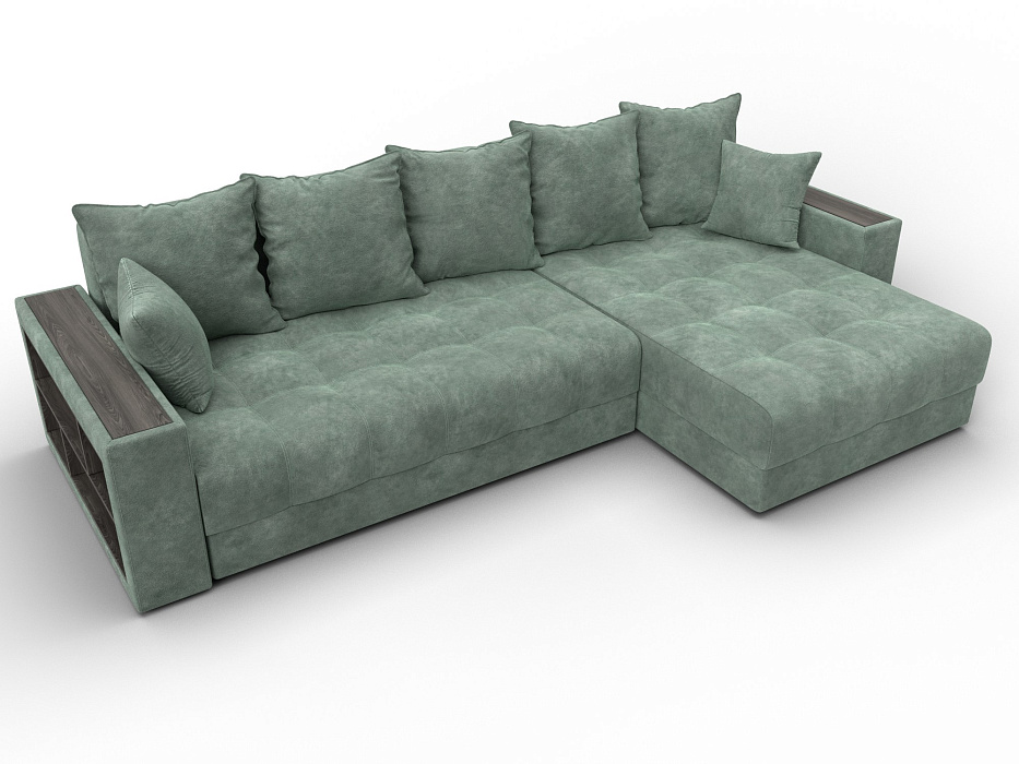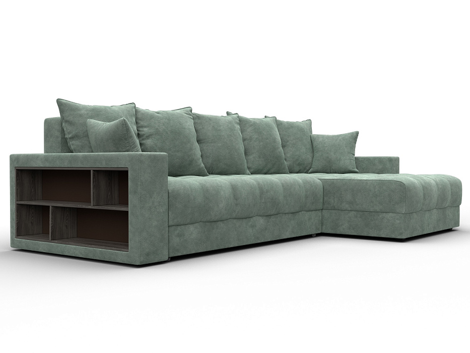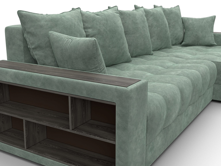Диван угловой с декором и полкой Лига-050 НПБ, BRUT 08 зеленый, Велюр