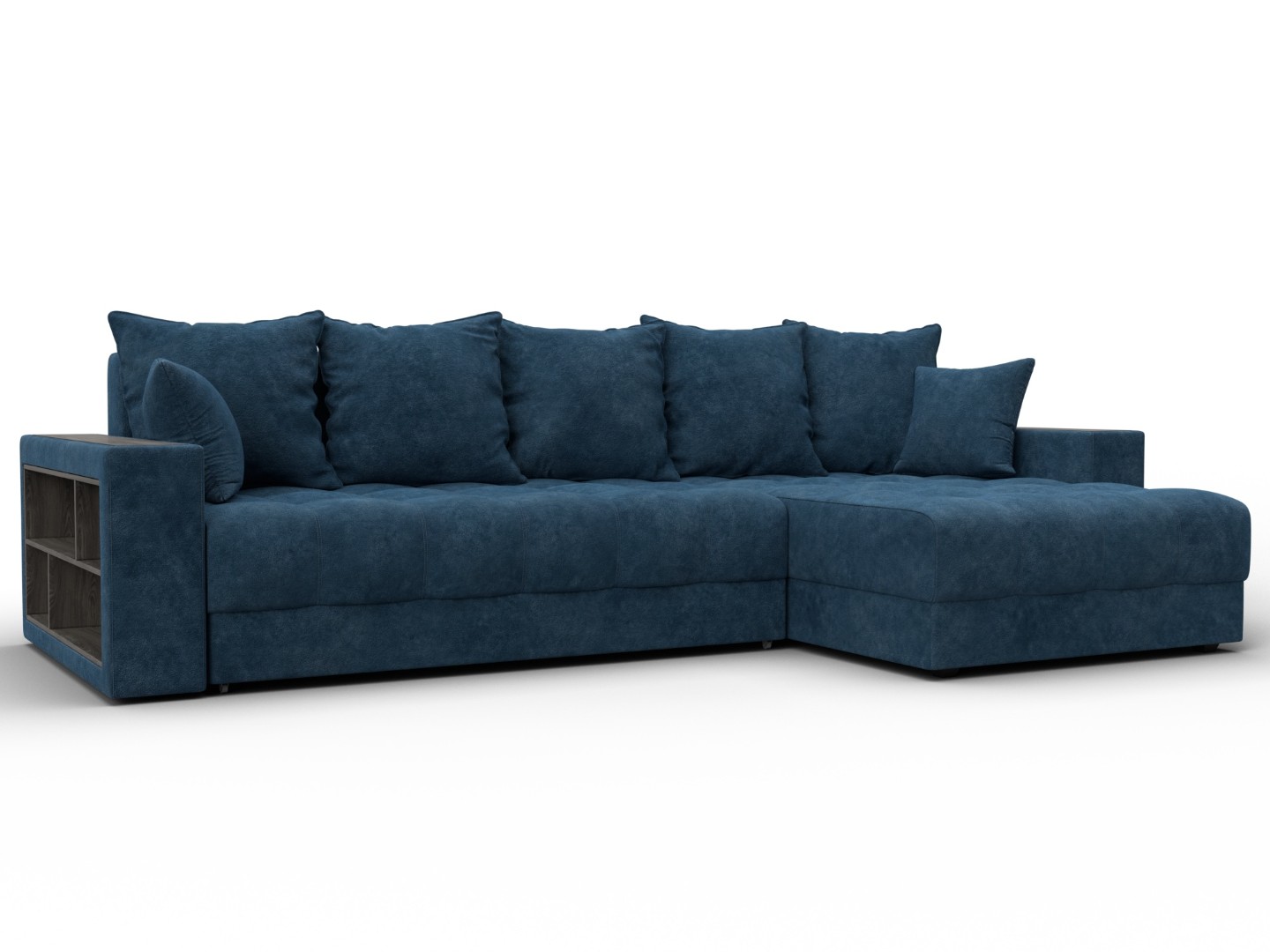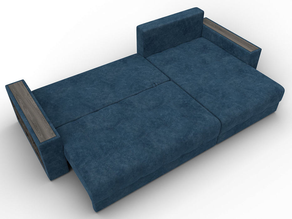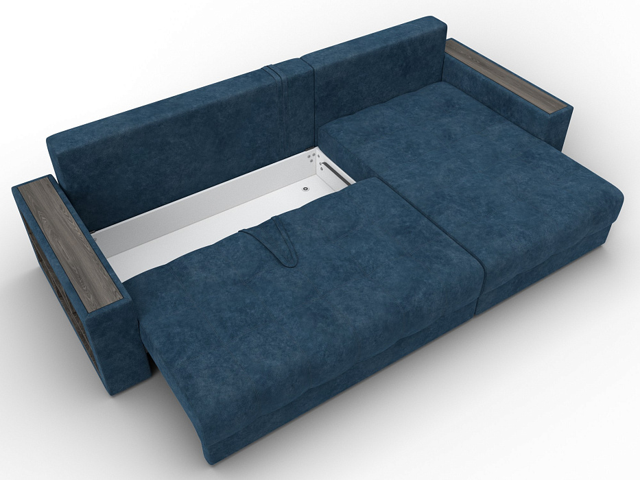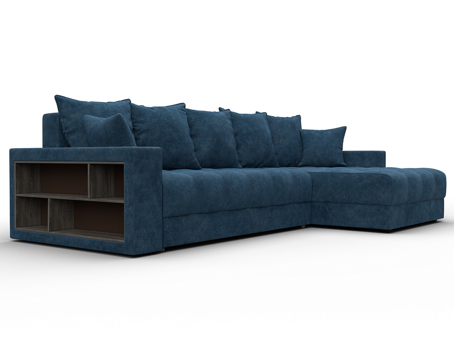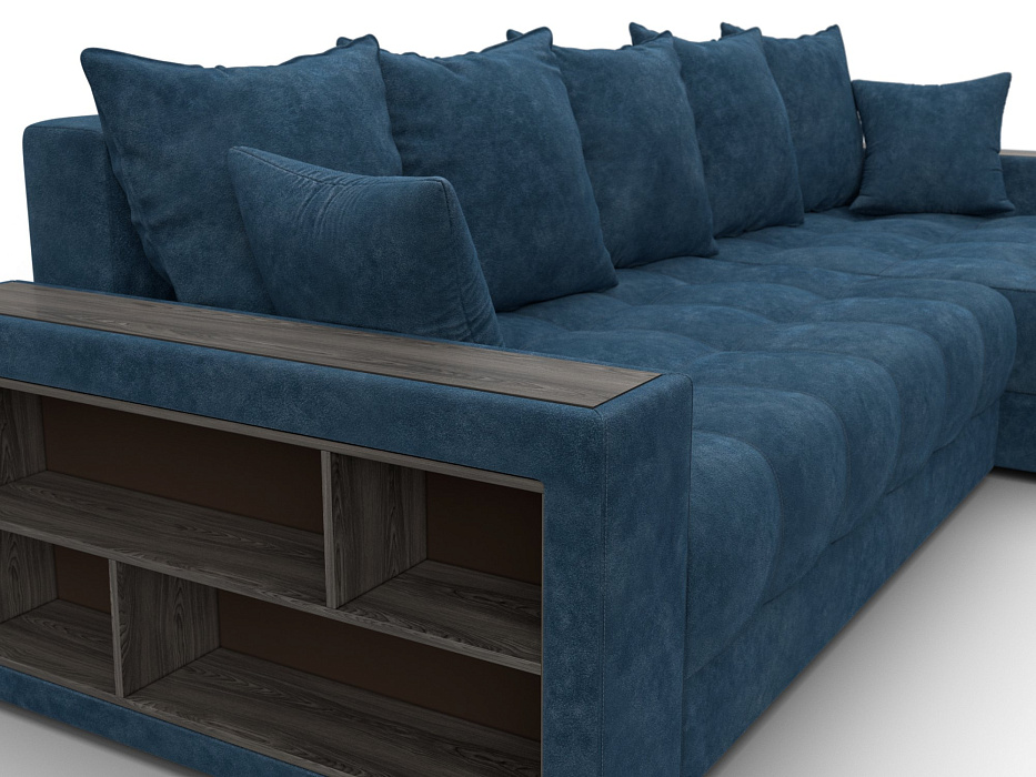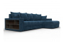 Диван угловой с декором и полкой Лига-050 НПБ, BRUT 11 синий, Велюр