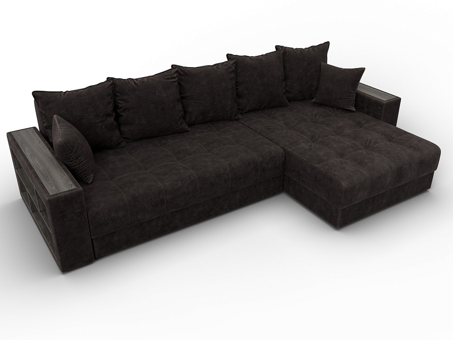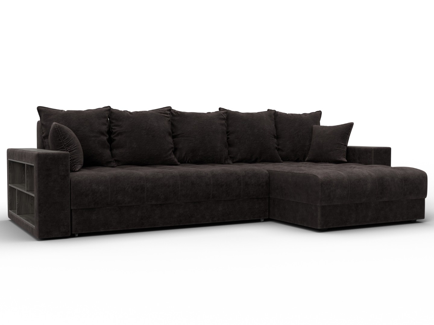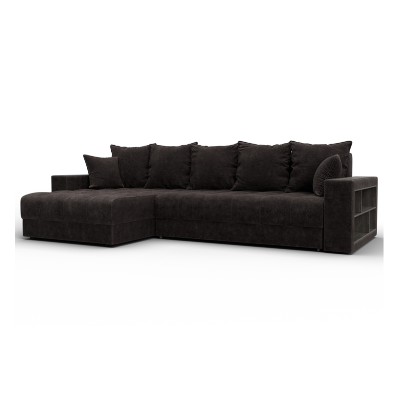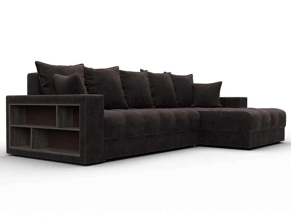 Диван угловой с декором и полкой Лига-050 НПБ, BRUT 17 коричневый, Велюр