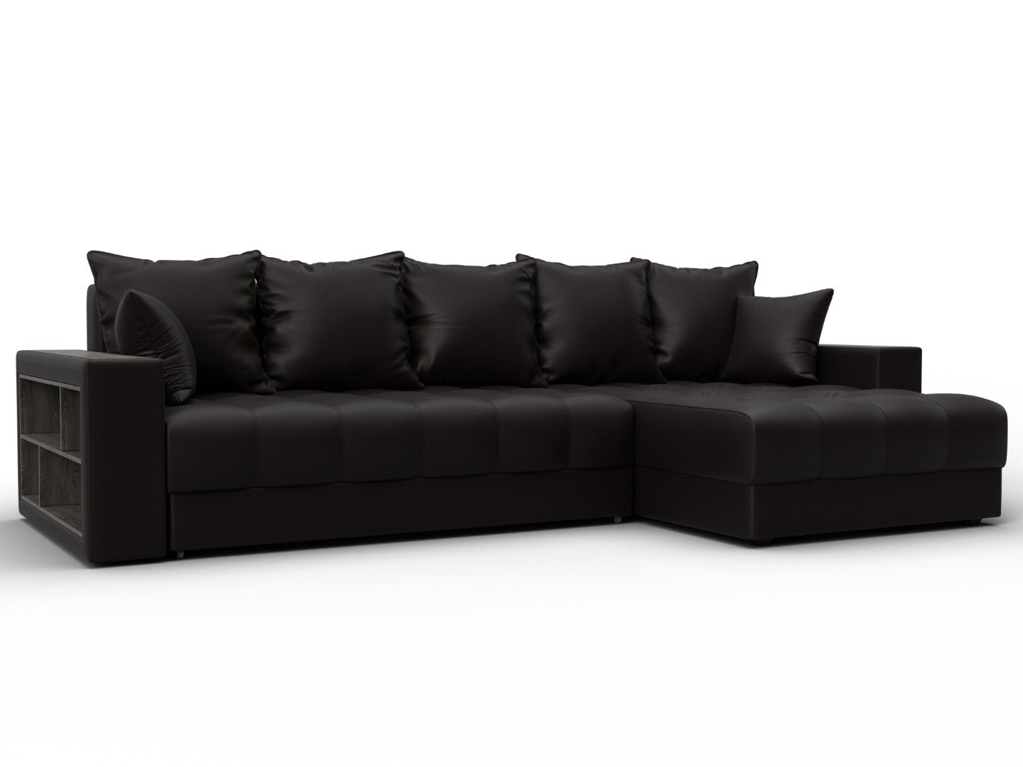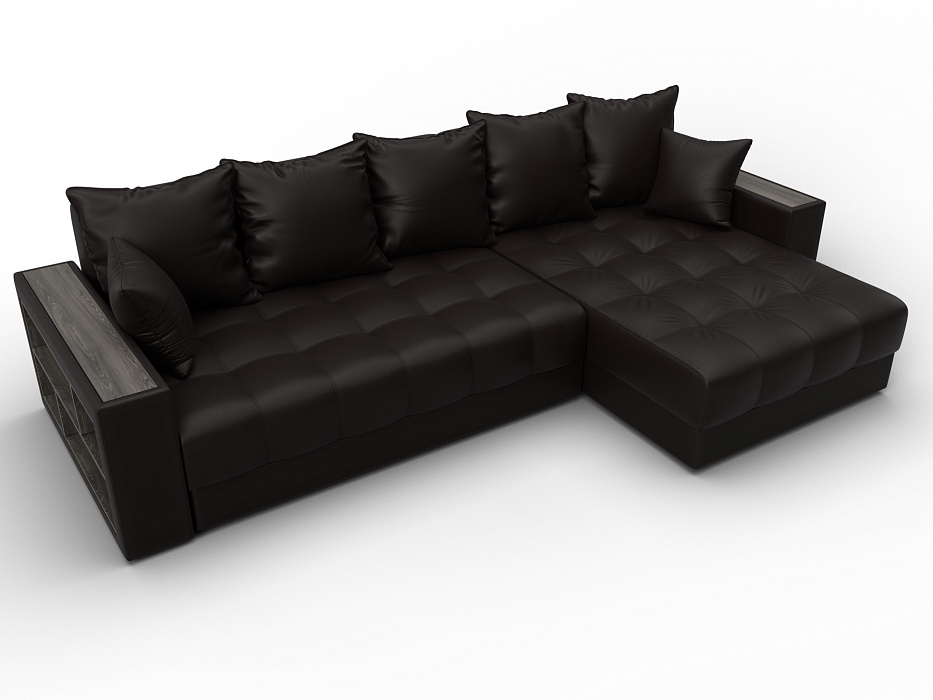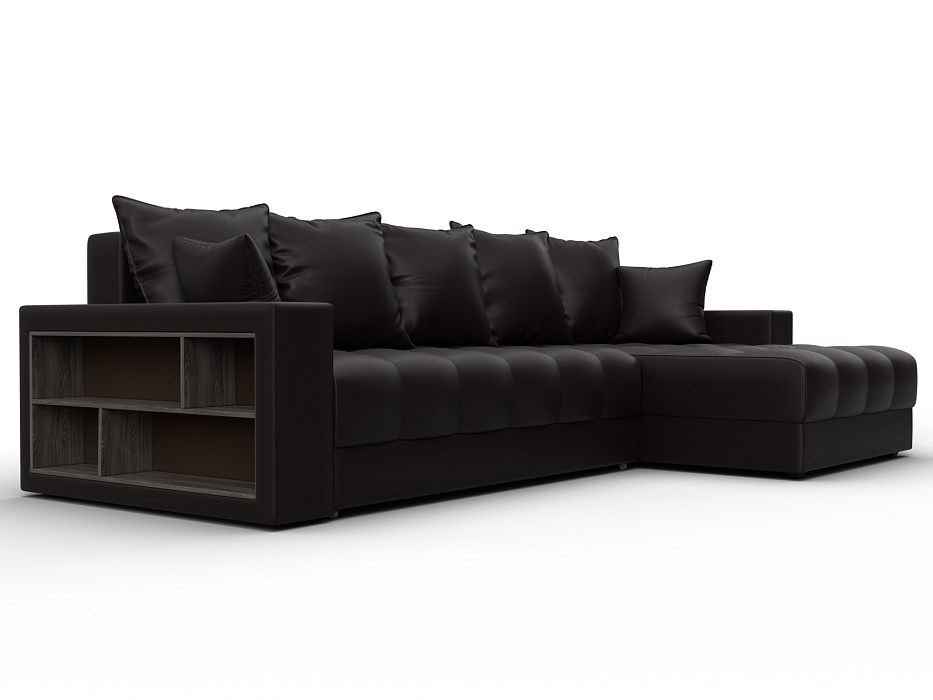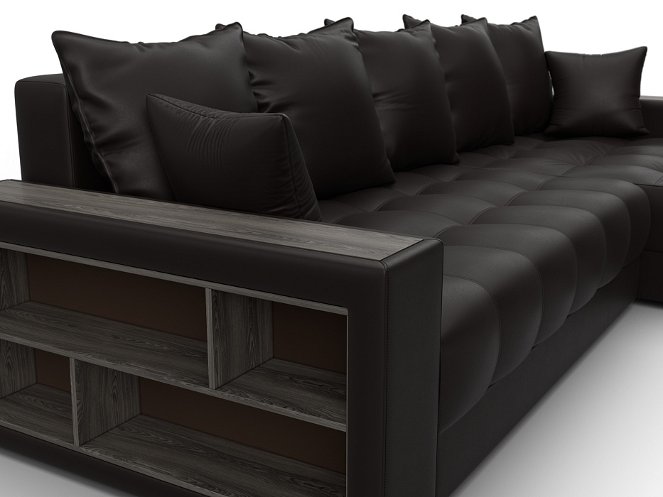 Диван угловой с декором и полкой Лига-050 НПБ, GRIFON 12 коричневый, Экокожа