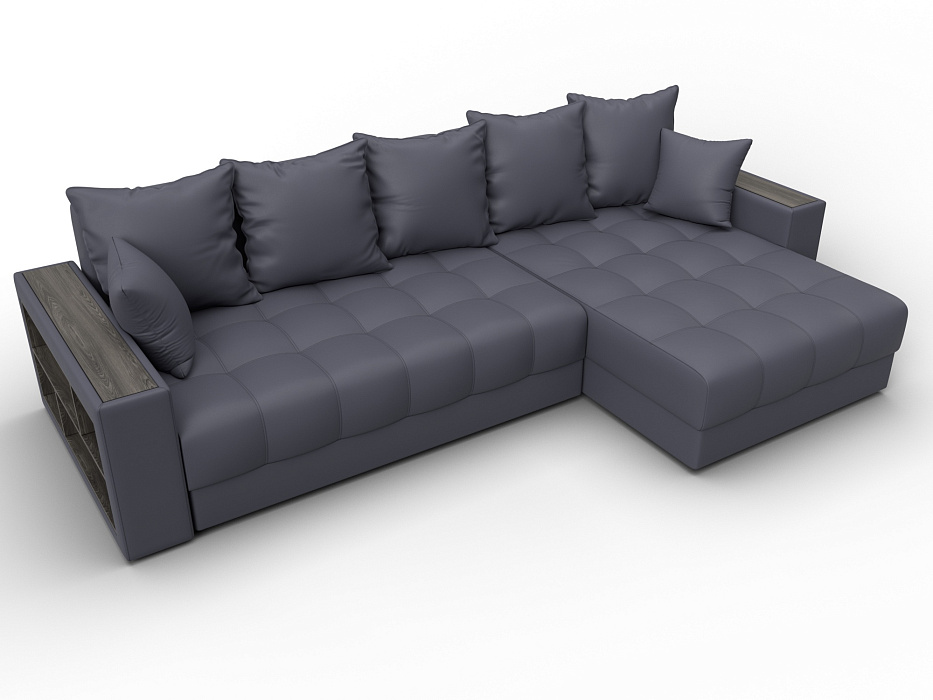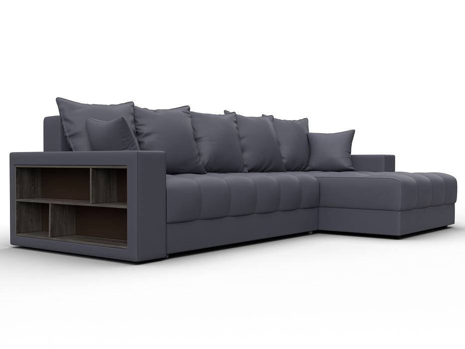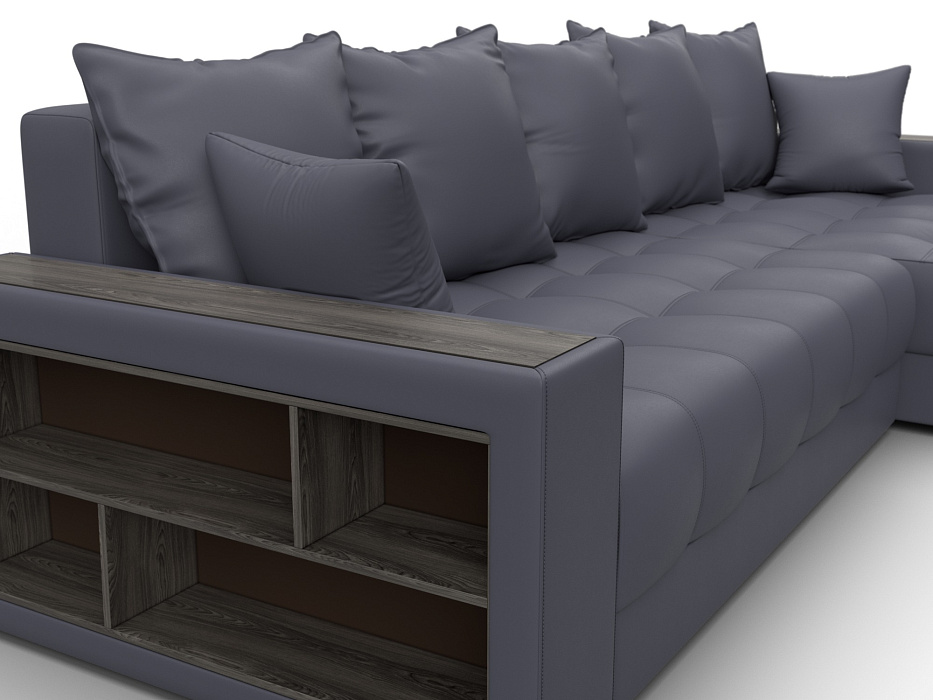 Диван угловой с декором и полкой Лига-050 НПБ, GRIFON 15 серый, Экокожа
