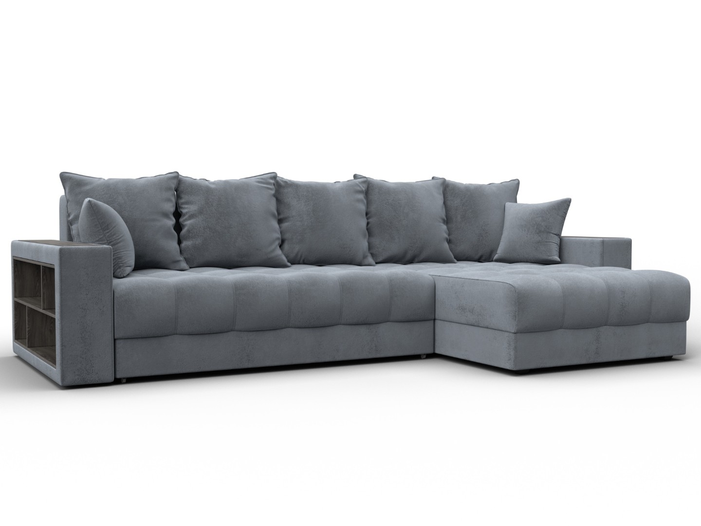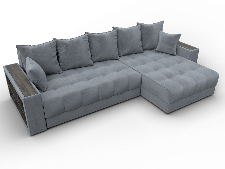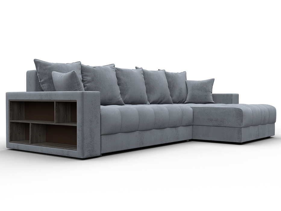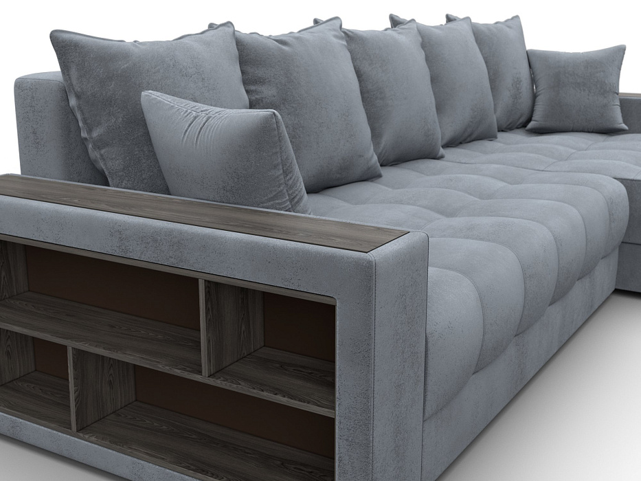 Диван угловой с декором и полкой Лига-050 НПБ, TOWER 10 серый, Велюр