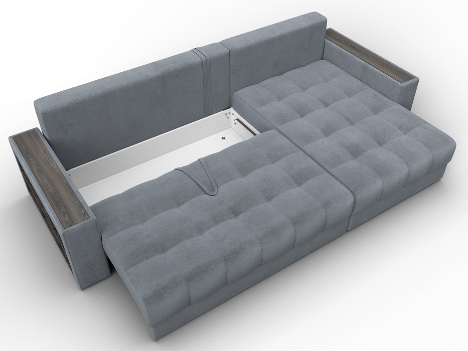 При габаритах: 280х90х162 см подойдет для комнат любых размеров, легко раскладывается, обеспечивая спальное место 145x238 см. Угол дивана универсальный, можно собрать с левым или с правым углом.