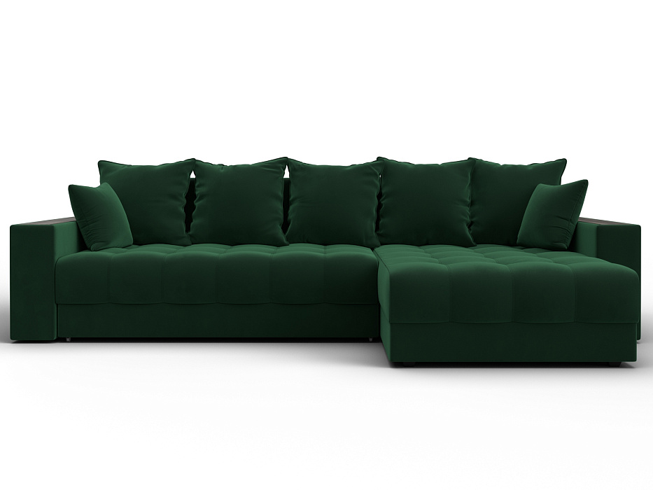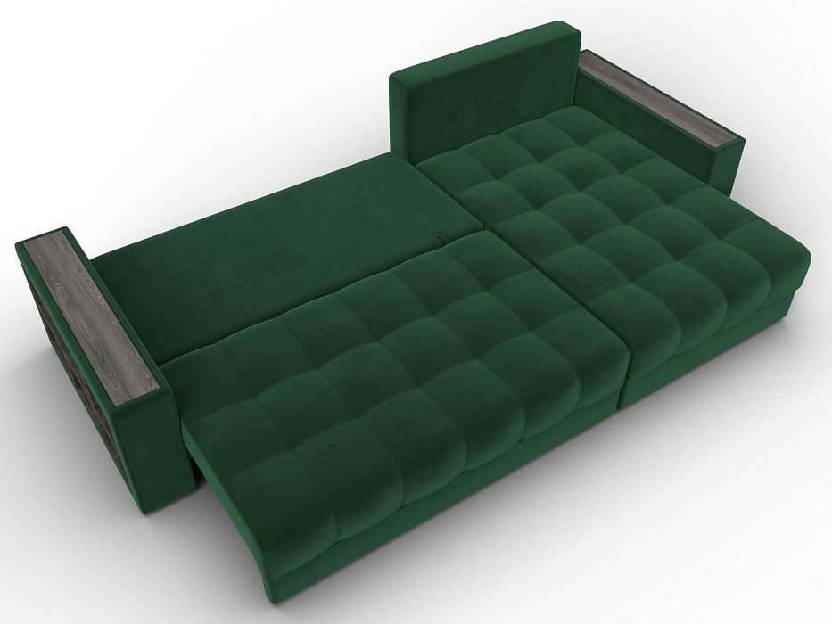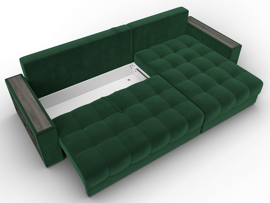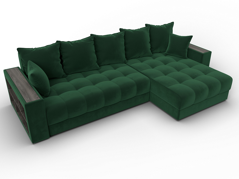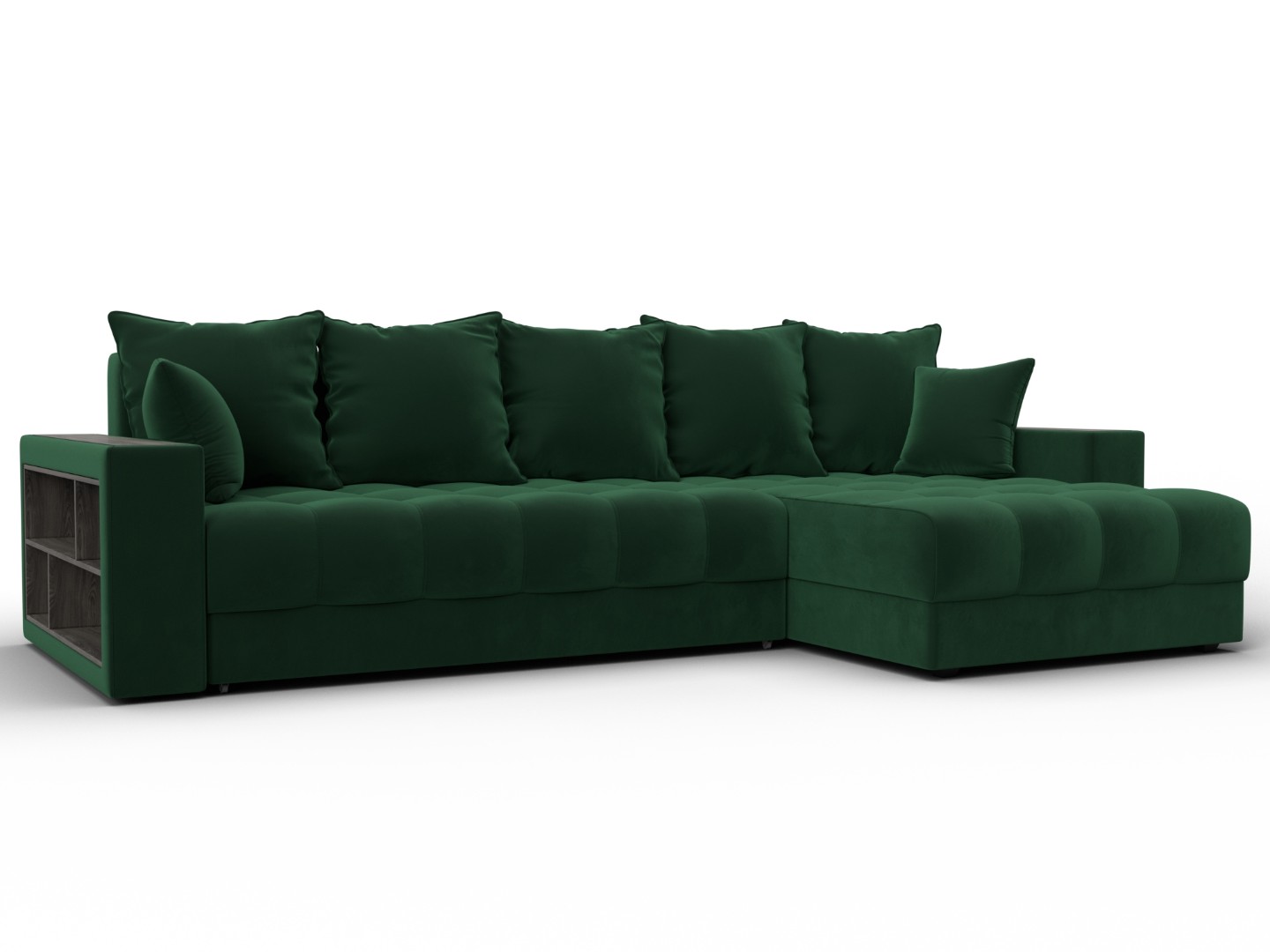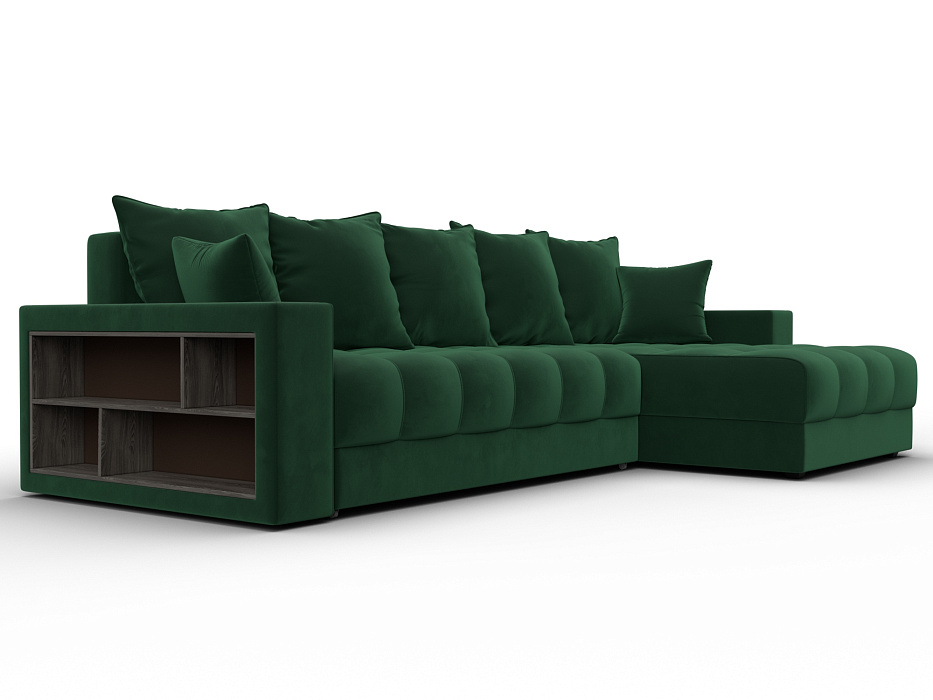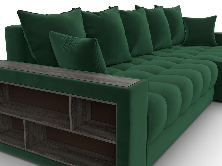 Диван угловой с декором и полкой Лига-050 НПБ, SEVEN 626 зеленый, Велюр