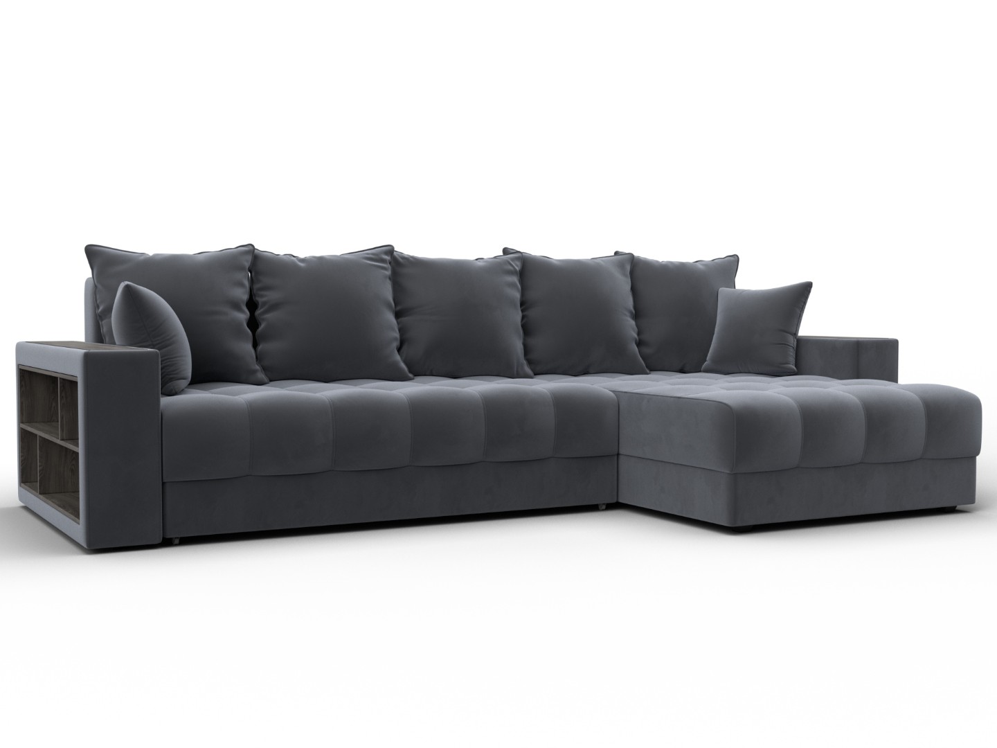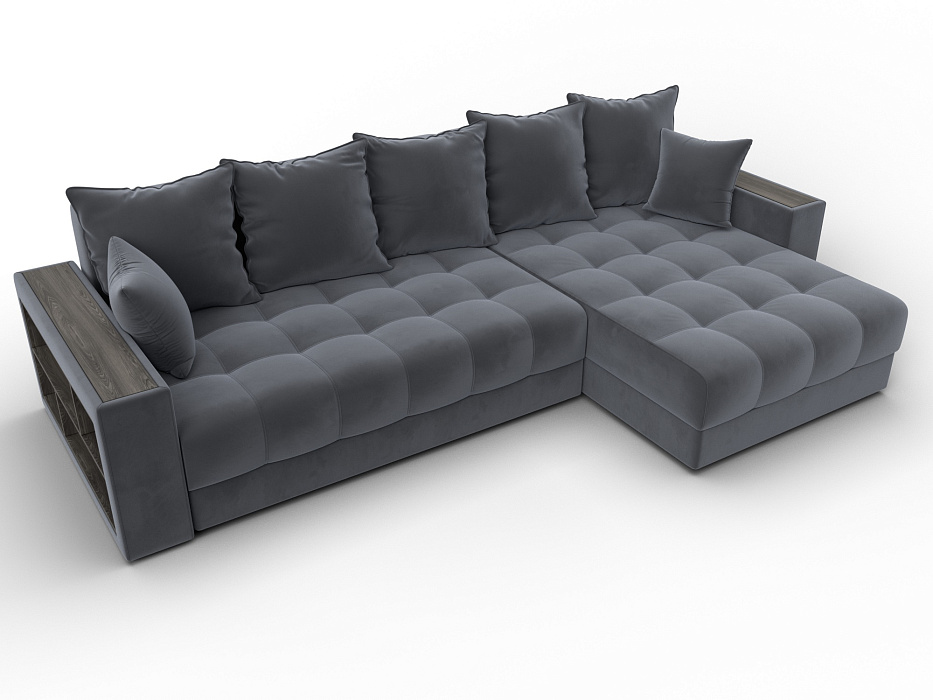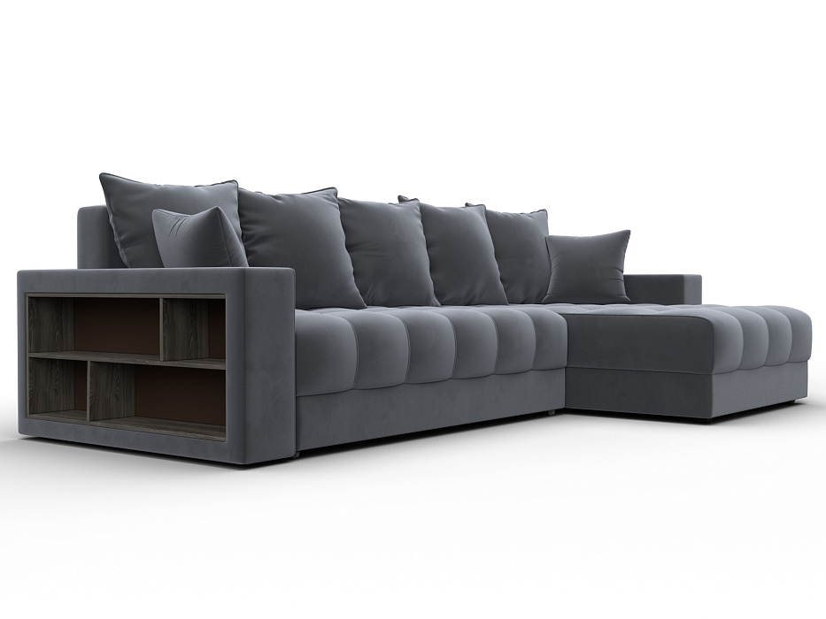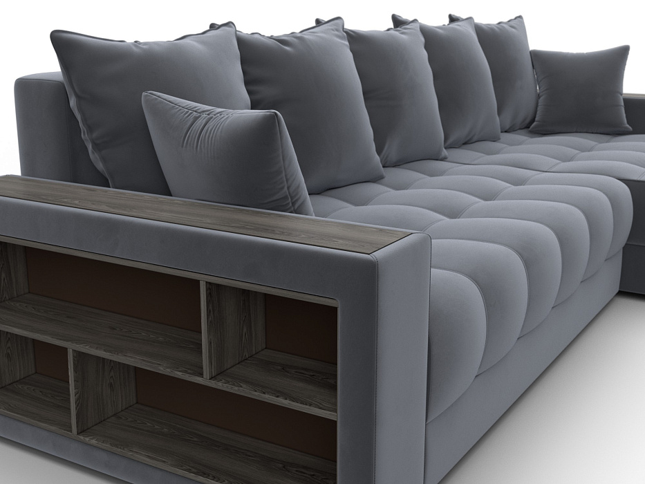 Диван угловой с декором и полкой Лига-050 НПБ, SEVEN 17 серый, Велюр