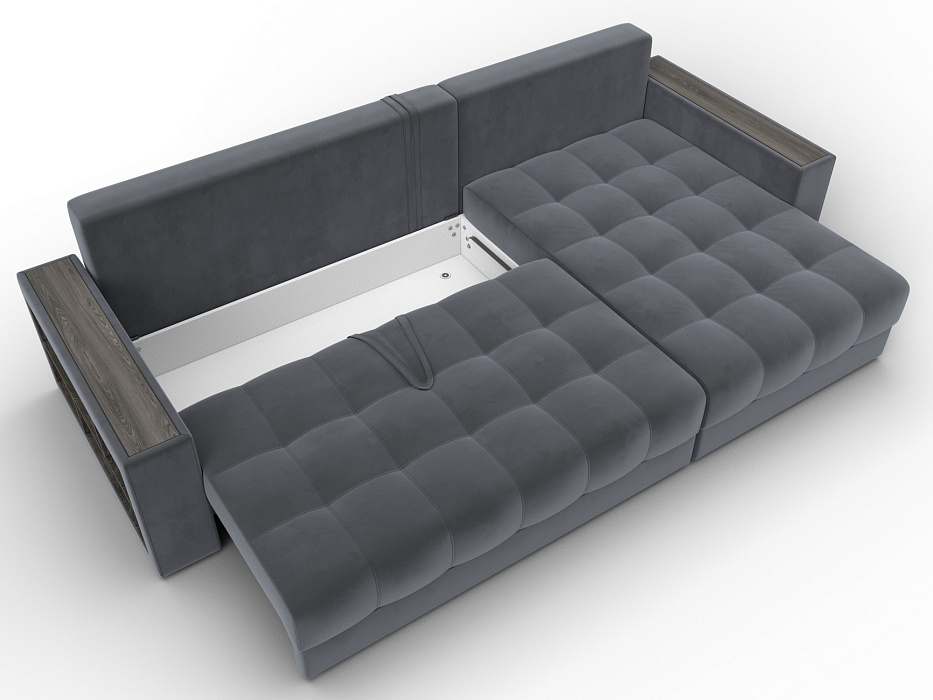 При габаритах: 280х90х162 см подойдет для комнат любых размеров, легко раскладывается, обеспечивая спальное место 145x238 см. Угол дивана универсальный, можно собрать с левым или с правым углом.
