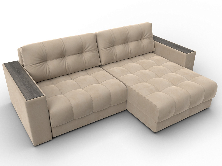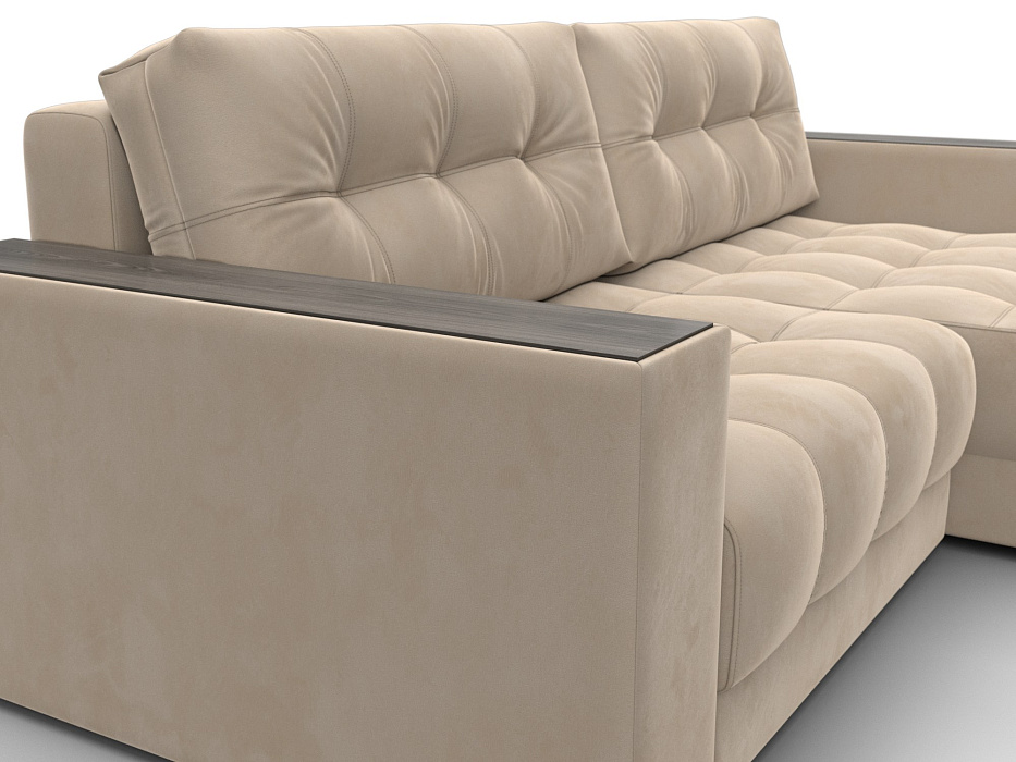 Диван угловой с декором Лига-049 НПБ, SEVEN 729 бежевый, Велюр