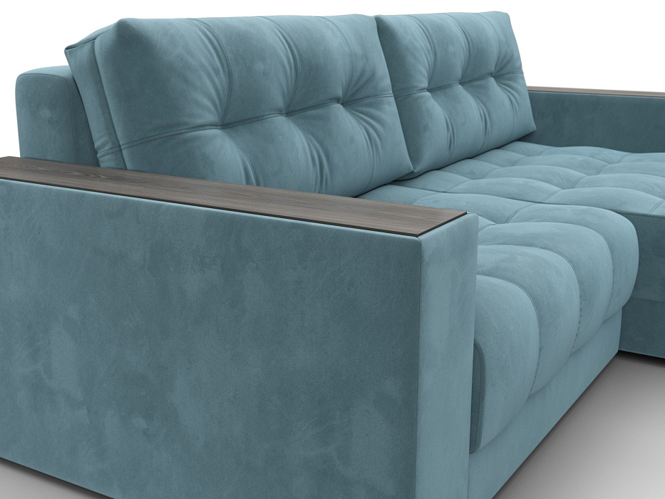 Диван угловой с декором Лига-049 НПБ, SEVEN 113 бирюзовый, Велюр