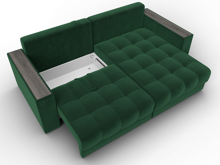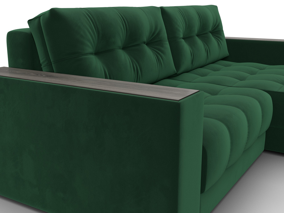 Диван угловой с декором Лига-049 НПБ, SEVEN 626 зеленый, Велюр