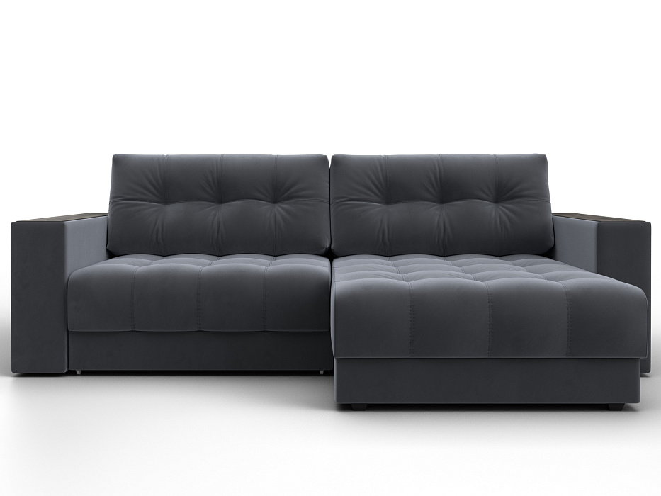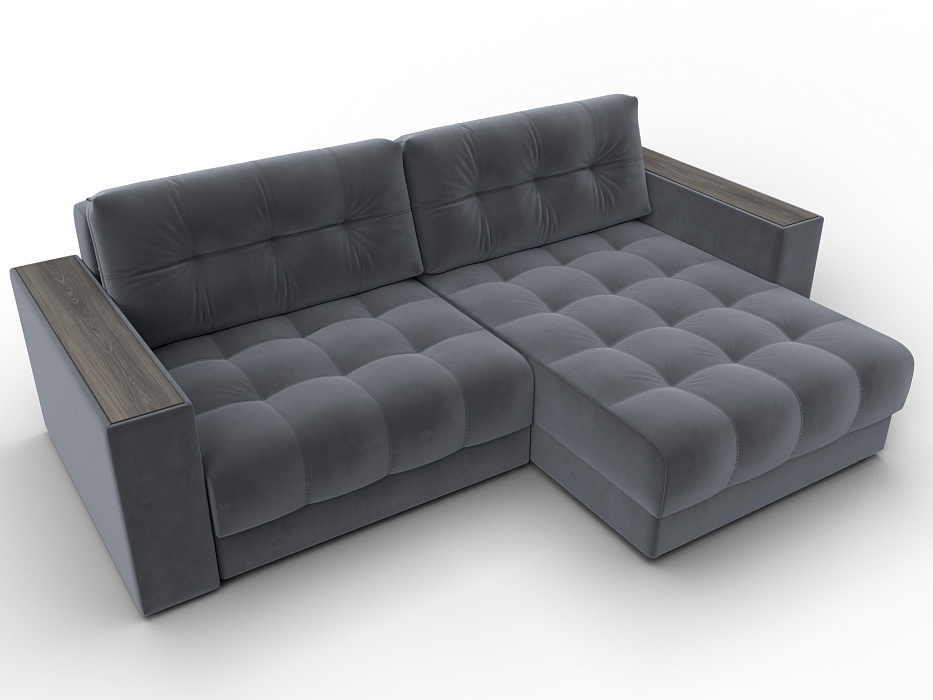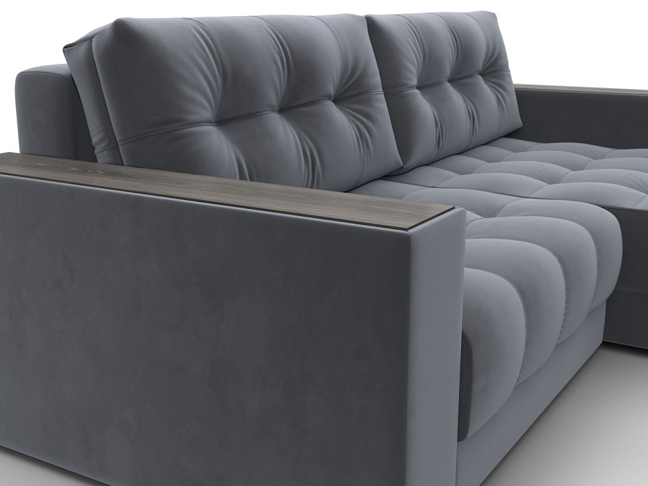 Диван угловой с декором Лига-049 НПБ, SEVEN 17 серый, Велюр