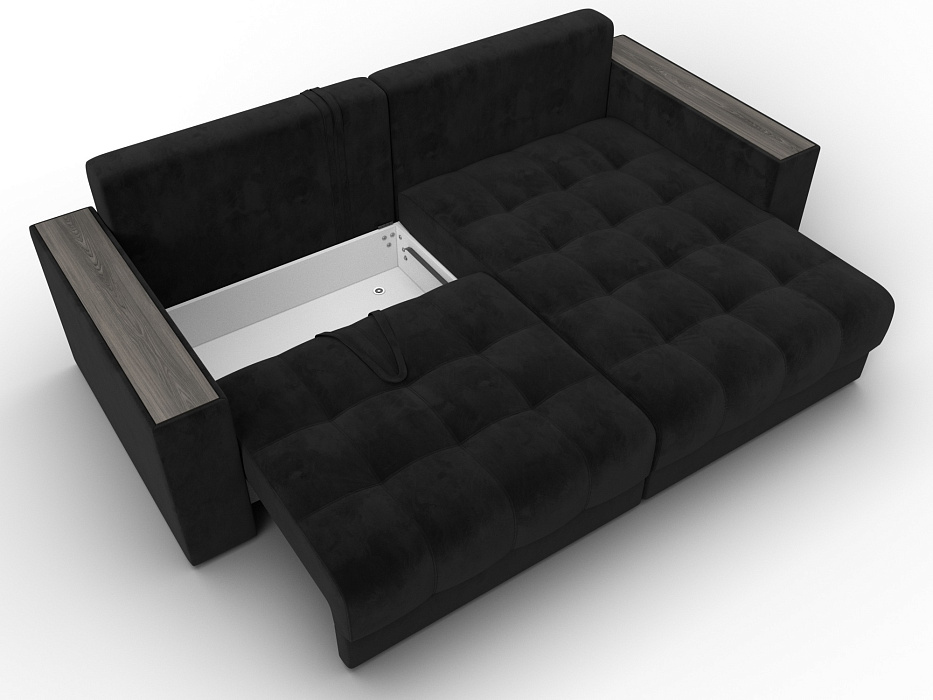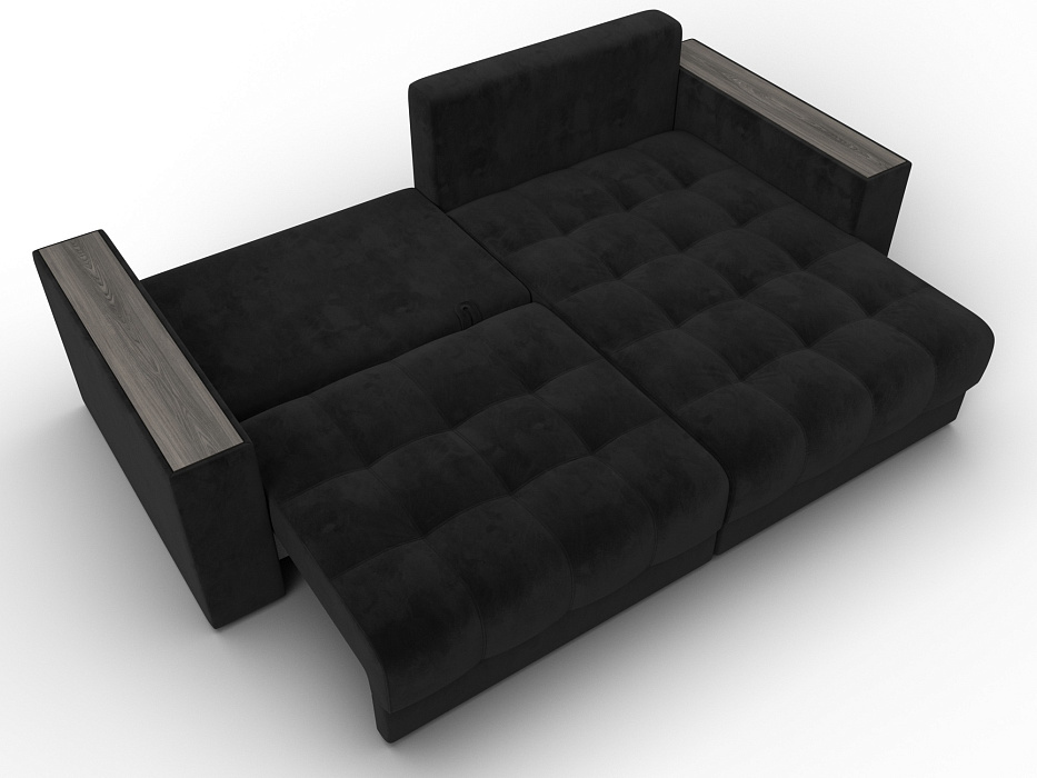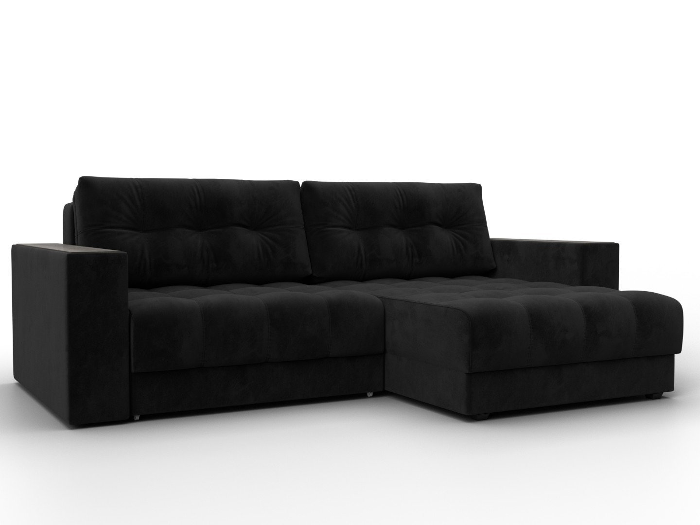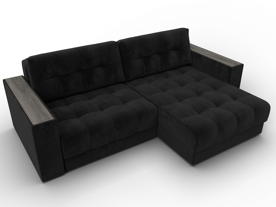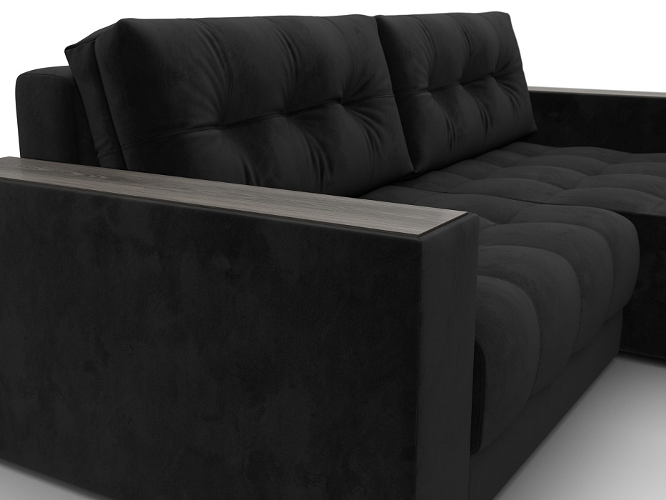 Диван угловой с декором Лига-049 НПБ, SEVEN 35 черный, Велюр