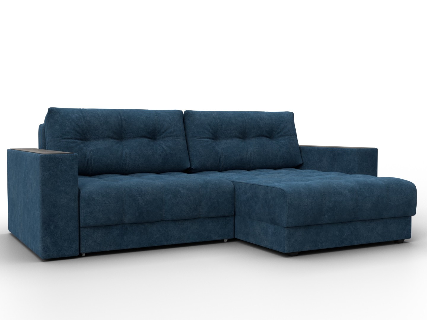 Диван угловой с декором Лига-049 НПБ, BRUT 11 синий, Велюр