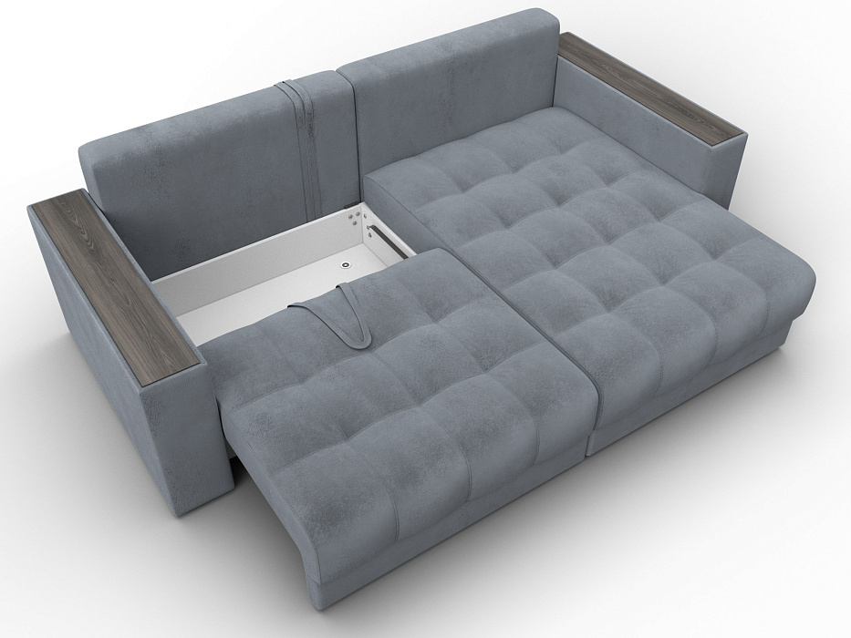 При габаритах: 234x90x158 см подойдет для комнат любых размеров, легко раскладывается, обеспечивая спальное место 143x192 см. Угол дивана универсальный, можно собрать с левым или с правым углом.
