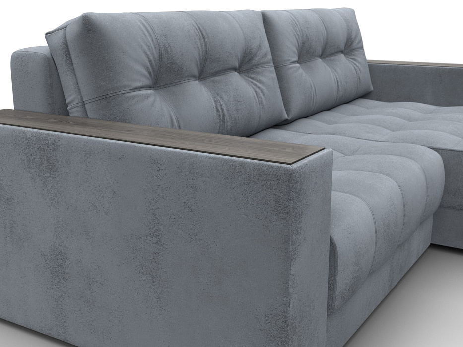 Диван угловой с декором Лига-049 НПБ, TOWER 10 серый, Велюр