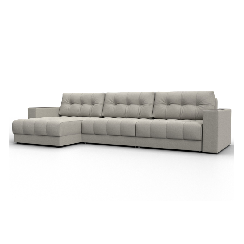 При габаритах: 330x90x158 см подойдет для комнат больших размеров, легко раскладывается, обеспечивая спальное место 143x288 см. Угол дивана универсальный, можно собрать с левым или с правым углом.