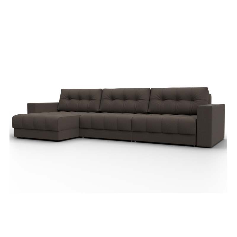 При габаритах: 330x90x158 см подойдет для комнат больших размеров, легко раскладывается, обеспечивая спальное место 143x288 см. Угол дивана универсальный, можно собрать с левым или с правым углом.
