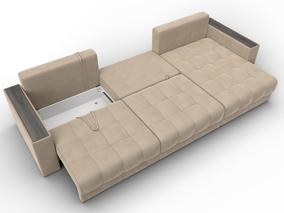 При габаритах: 330x90x158 см подойдет для комнат больших размеров, легко раскладывается, обеспечивая спальное место 143x288 см. Угол дивана универсальный, можно собрать с левым или с правым углом.