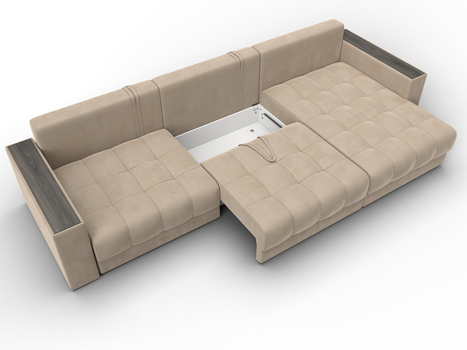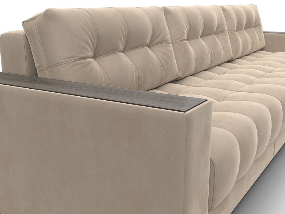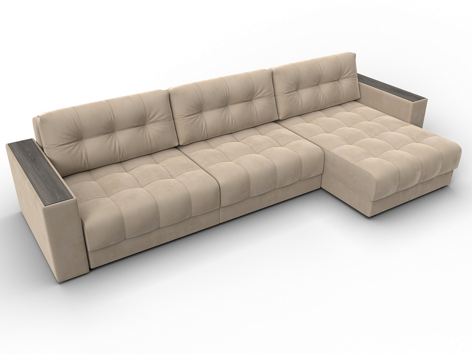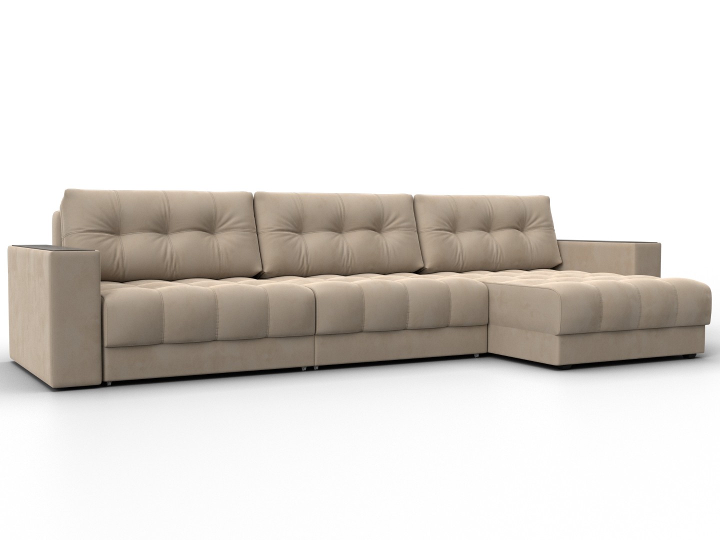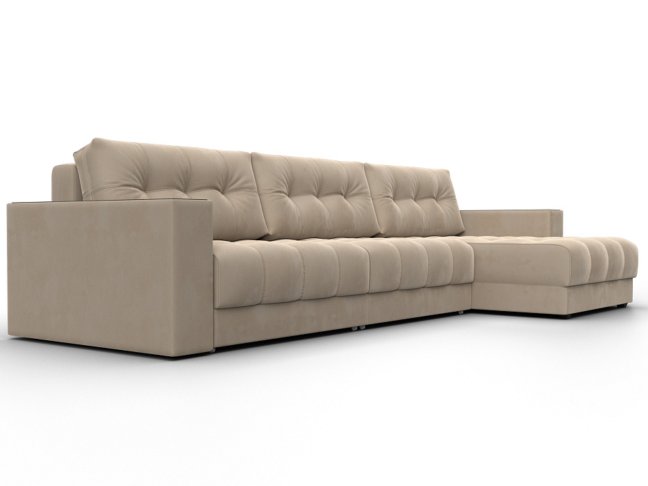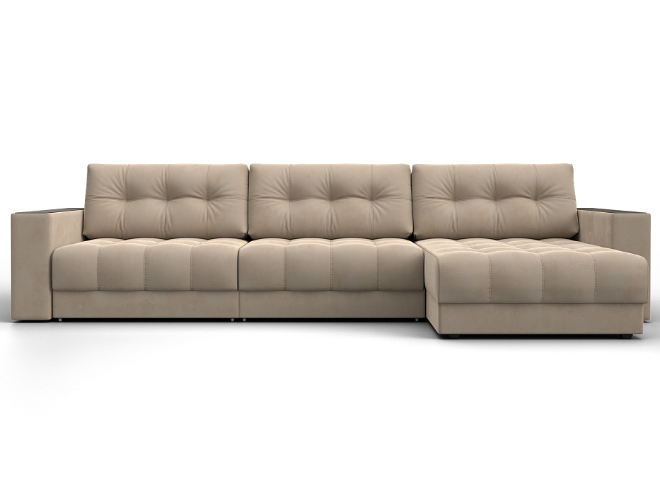 Диван угловой с декором Лига-049 НПБ Лонг, SEVEN 729 бежевый, Велюр