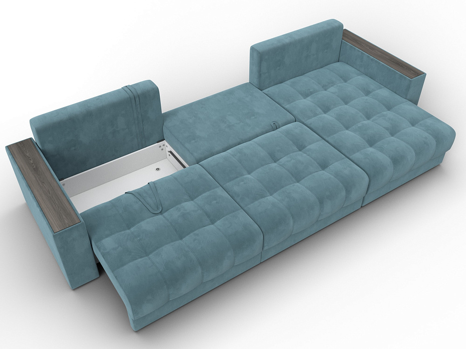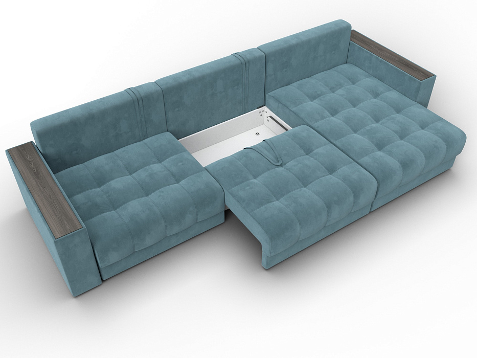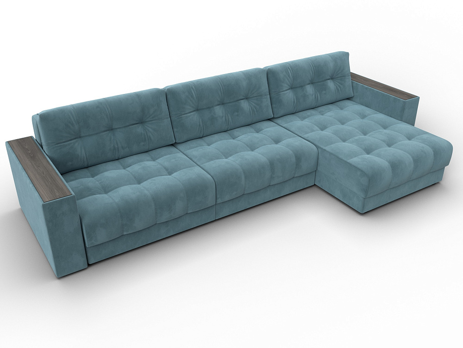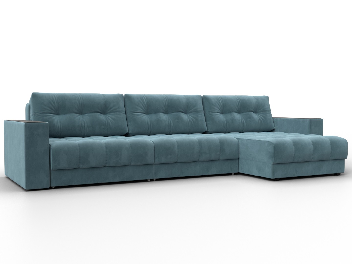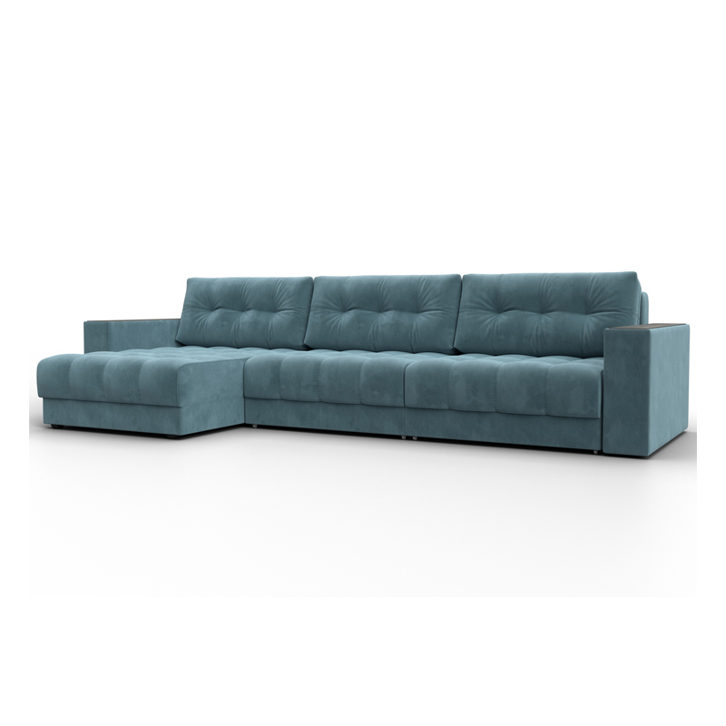 Диван угловой с декором Лига-049 НПБ Лонг, SEVEN 113 бирюзовый, Велюр