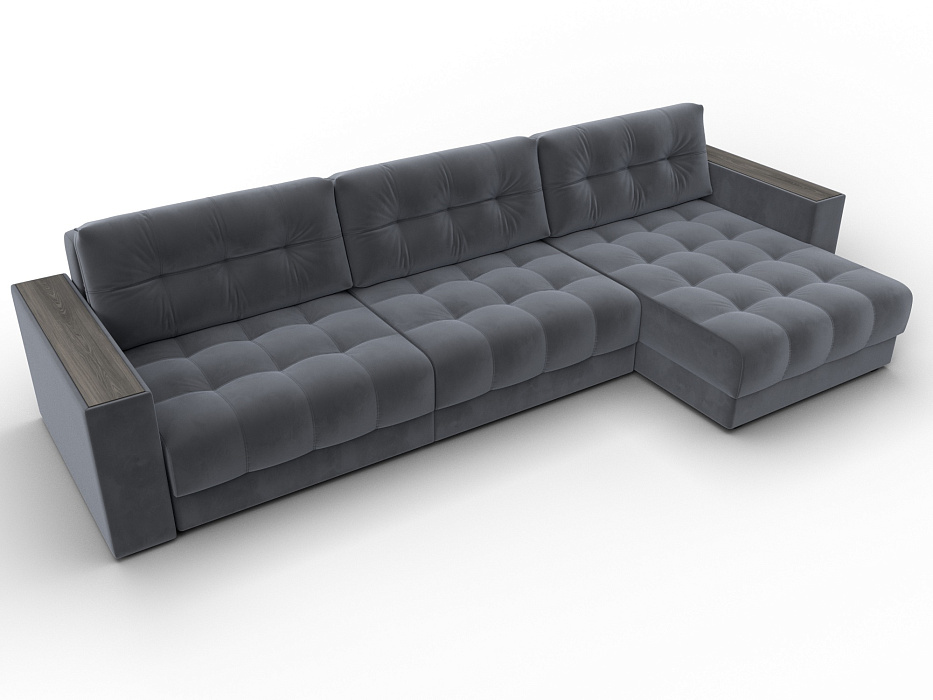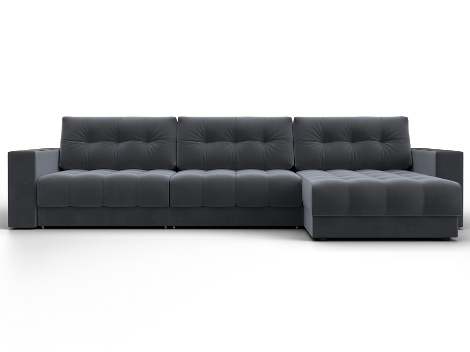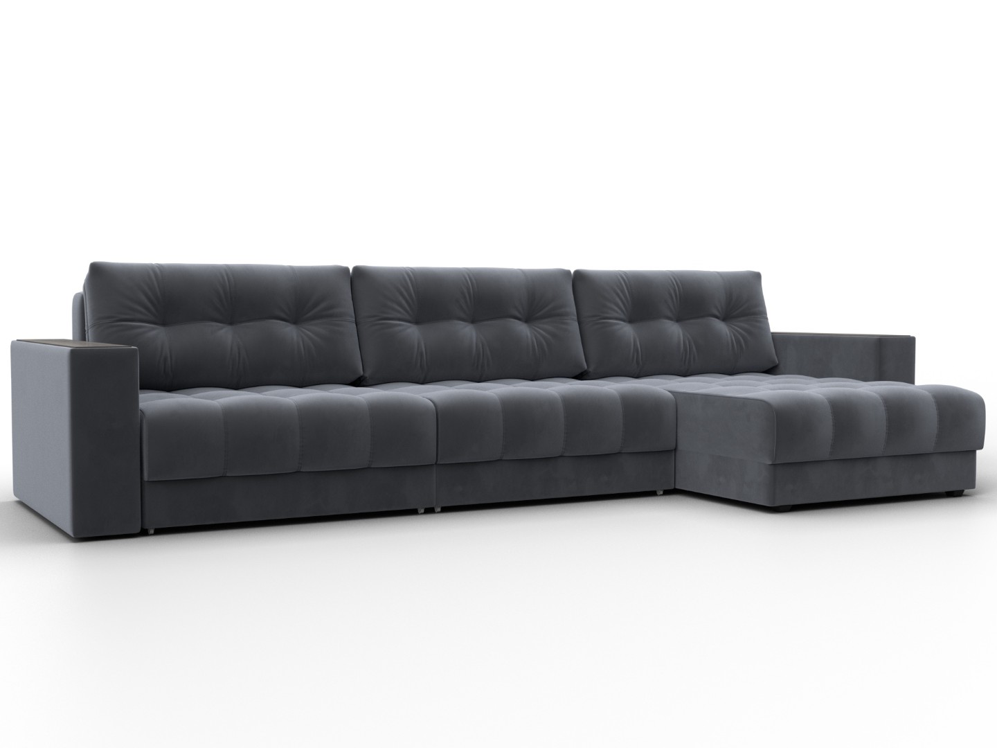 Диван угловой с декором Лига-049 НПБ Лонг, SEVEN 17 серый, Велюр