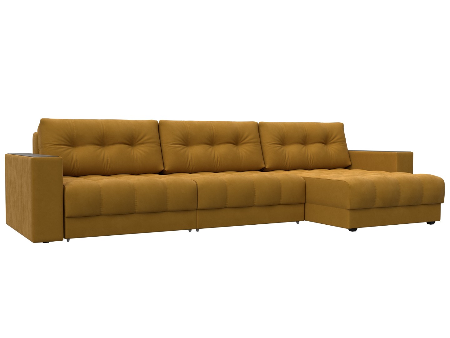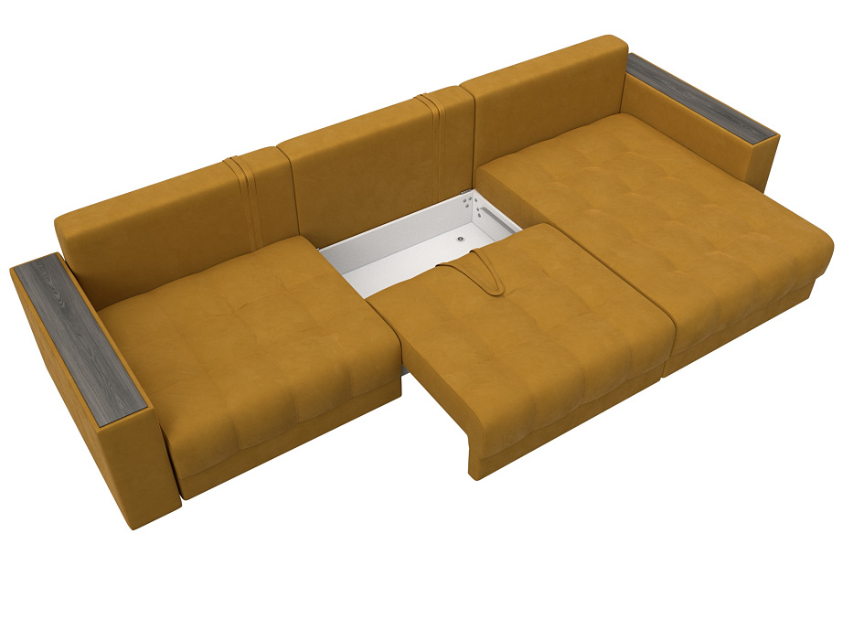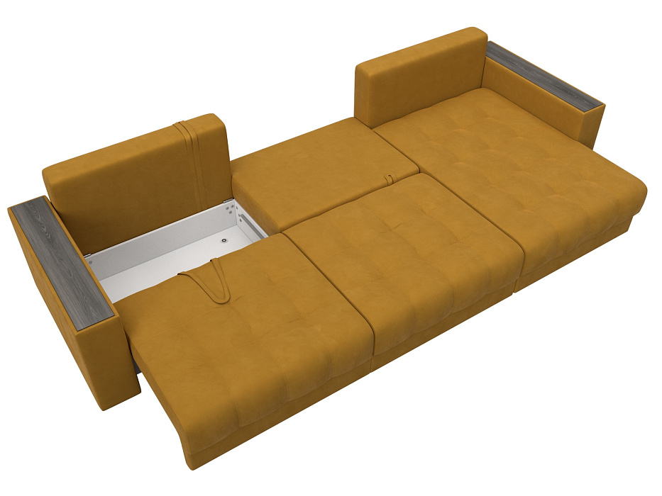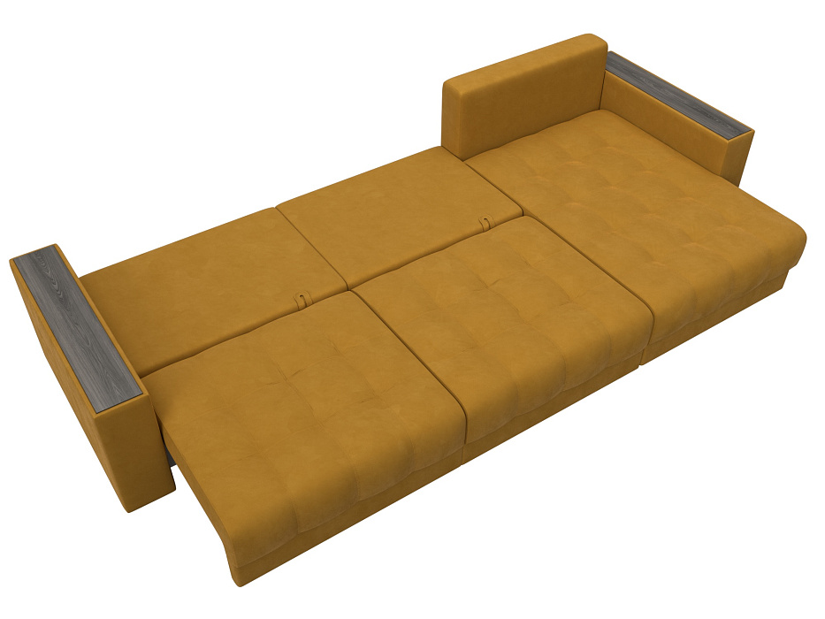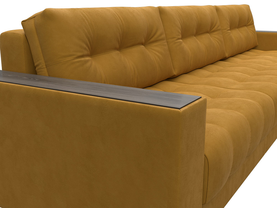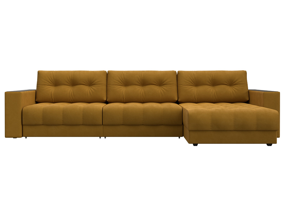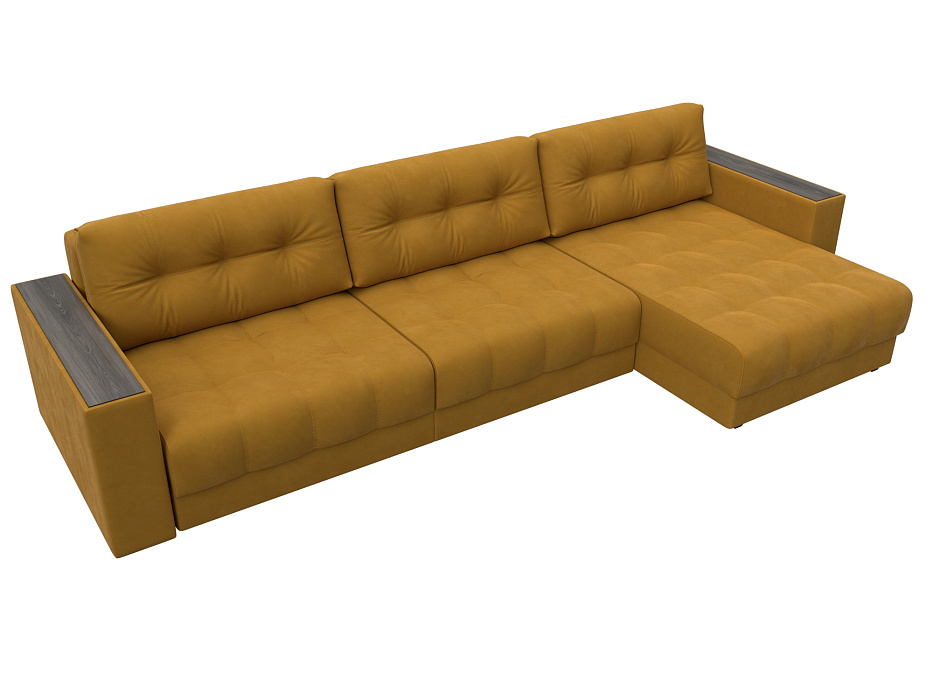 Диван угловой с декором Лига-049 НПБ Лонг, BRUT 10 желтый, Велюр