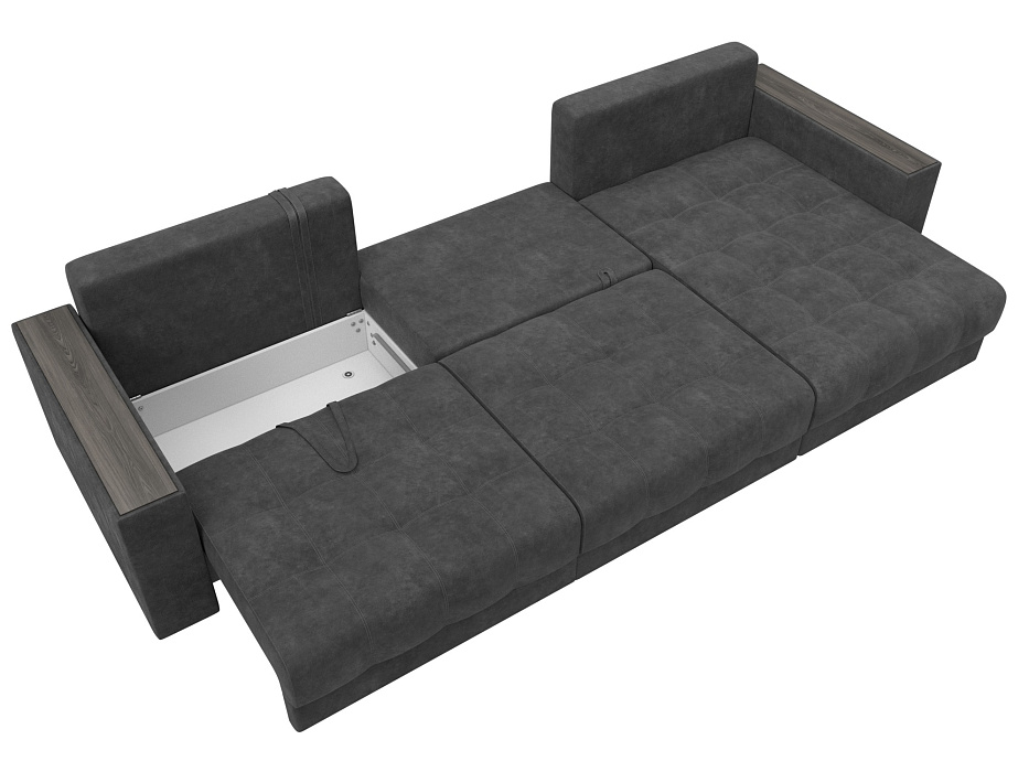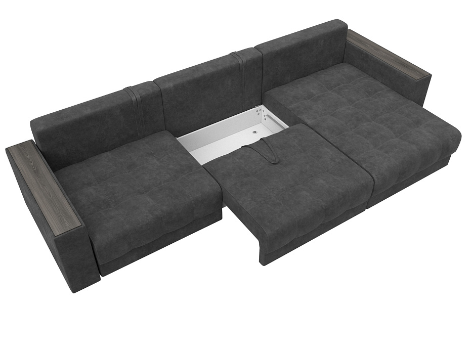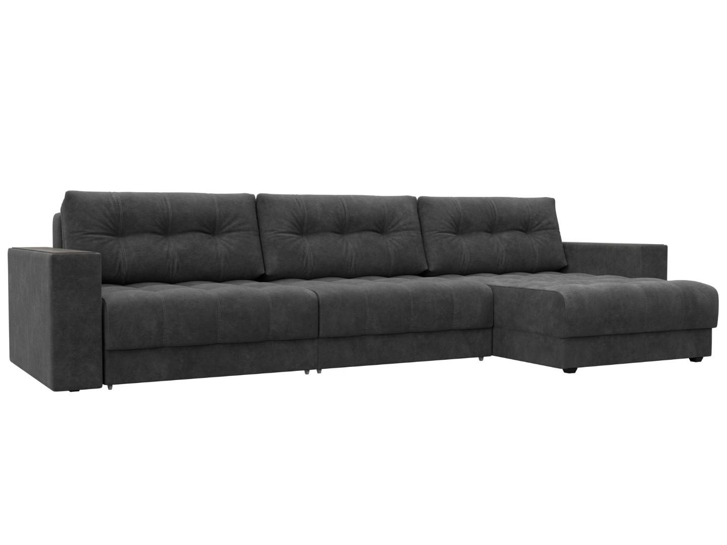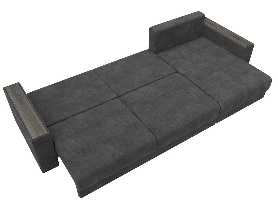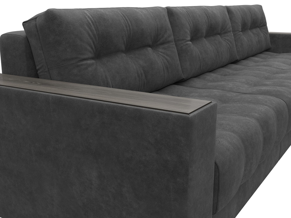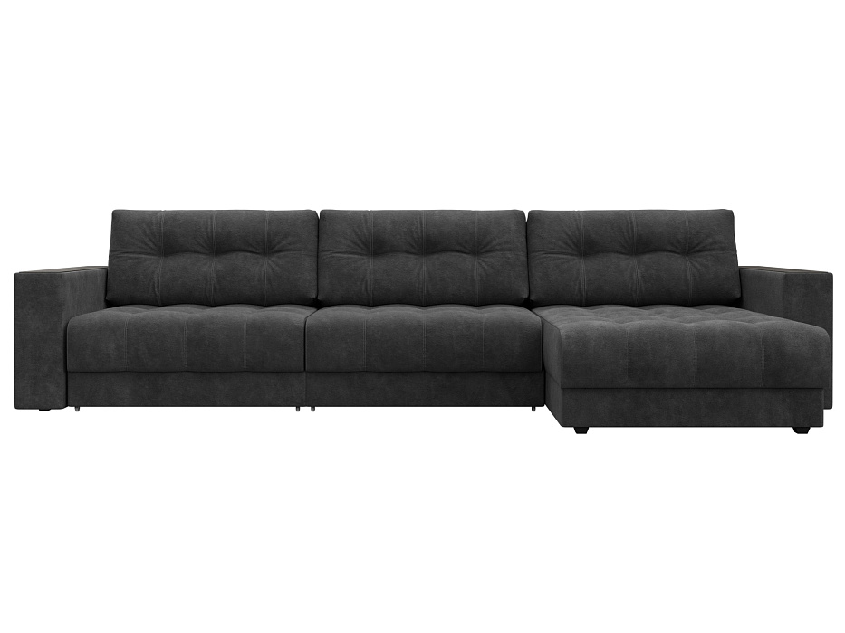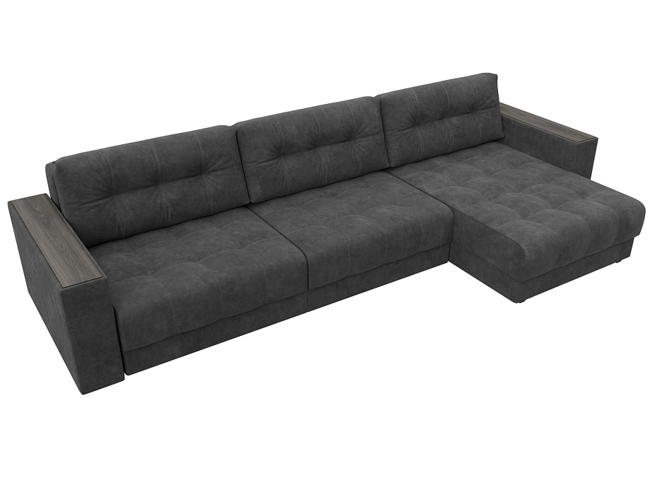 Диван угловой с декором Лига-049 НПБ Лонг, BRUT 16 темно-серый, Велюр