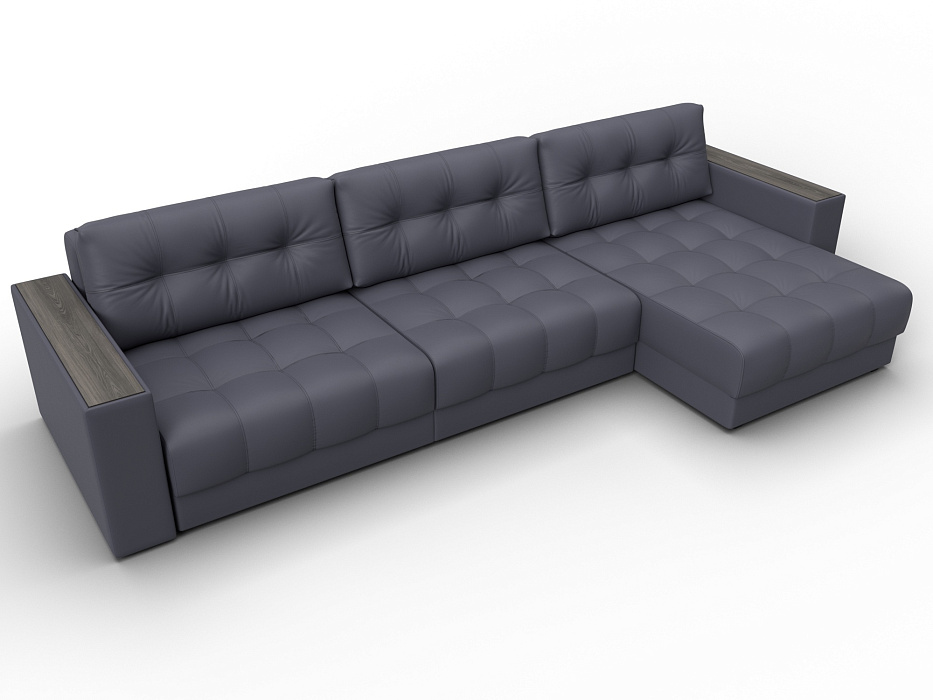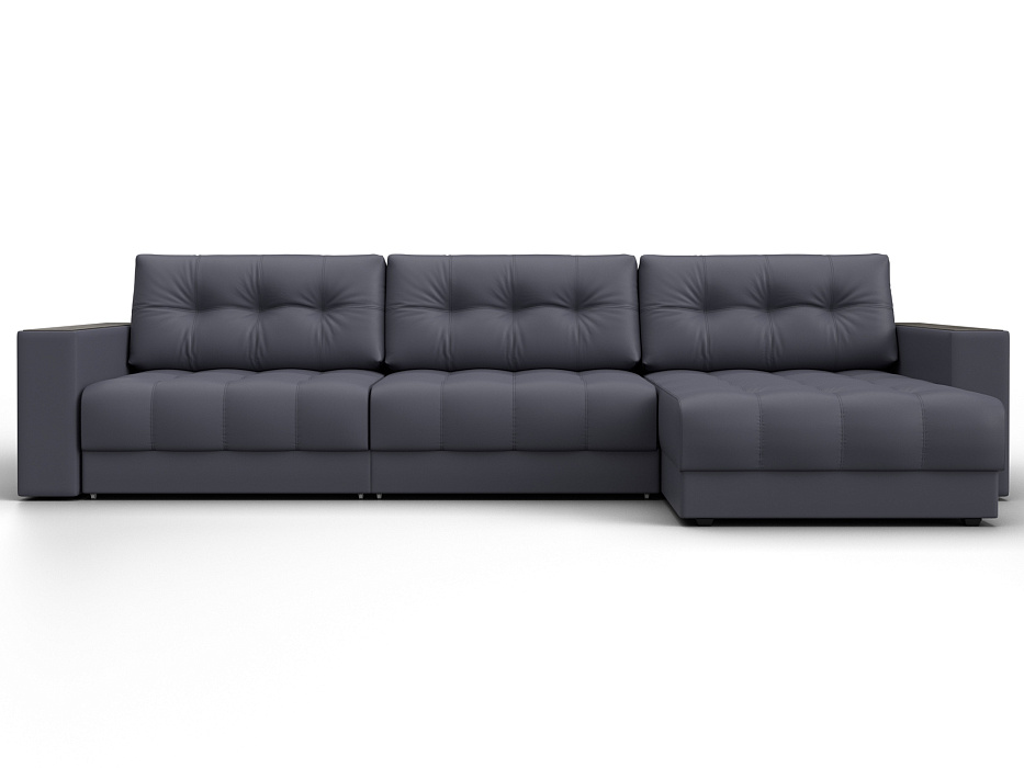 Диван угловой с декором Лига-049 НПБ Лонг, GRIFON 15 серый, Экокожа