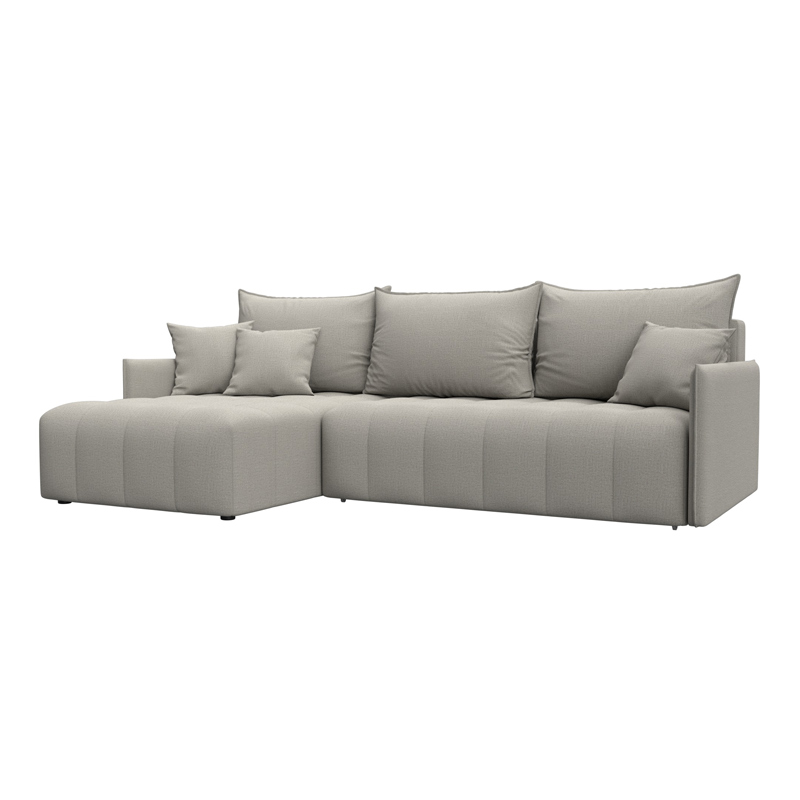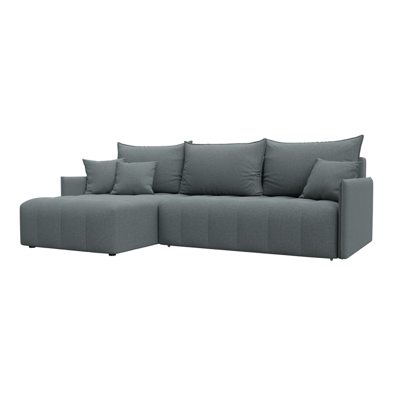При габаритах: 252х92х162 см подойдет для комнат любых размеров, легко раскладывается, обеспечивая спальное место 144x237 см. Угол дивана универсальный, можно собрать с левым или с правым углом.