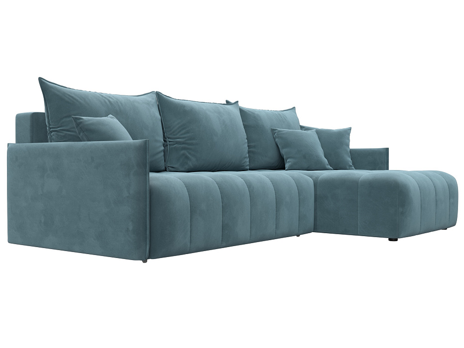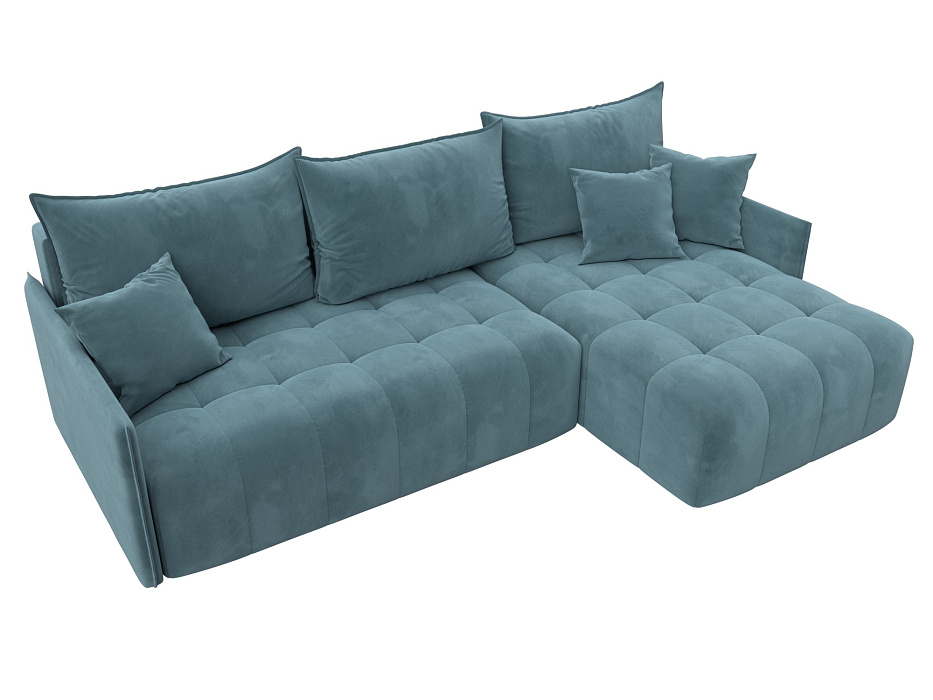 Диван угловой Лига-054 НПБ угол универсальный, SEVEN 113 бирюзовый, Велюр