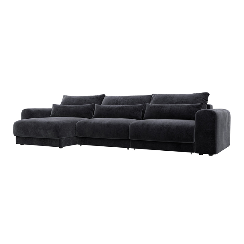 Диван угловой Лига-056 НПБ Лонг угол универсальный Темно-серый, Велюр