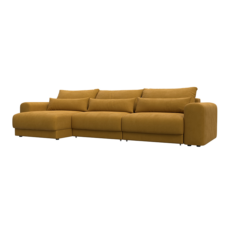 Диван угловой Лига-056 НПБ Лонг угол универсальный Желтый, Велюр