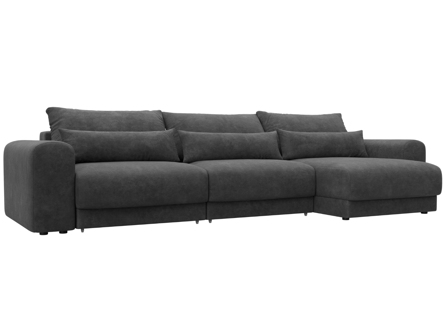 Диван угловой Лига-056 НПБ Лонг угол универсальный Темно-серый, Велюр